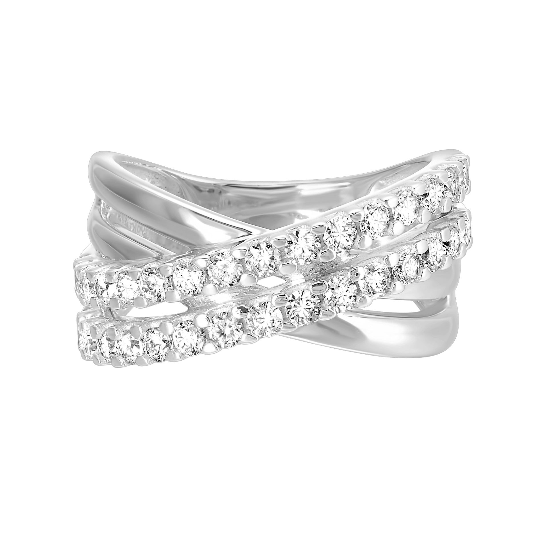 This designer inspired fashion ring is sure to delight this holiday season! This 10K white gold ring features an X design and diagonal set with 1CTW of glittering diamonds.