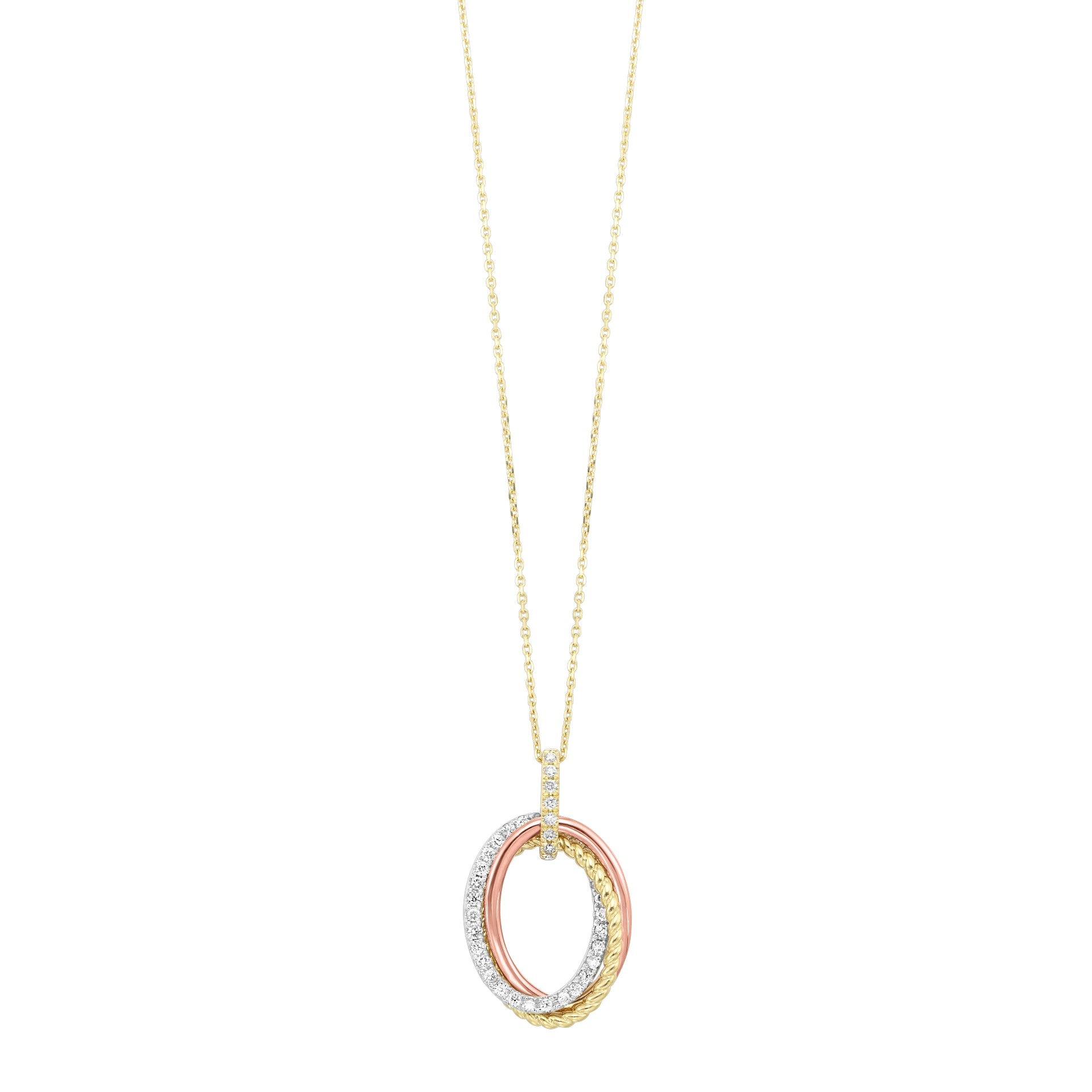 14K Tri-Toned Gold and Diamond Oval Shaped Pendant