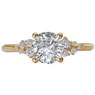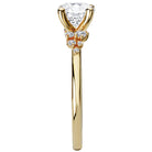 This is a beautiful 14kt yellow gold semi-mount engagement ring with diamonds adorning either side of a setting that will accommodate a 6.5mm round diamond. (D 1/7 carat total weight)