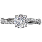 This is a beautiful semi-mount engagement ring features a band crafted of twisted 14kt white gold and diamonds that showcase a setting that will accommodate a round 6.5mm diamond. (D 1/5 carat total weight)