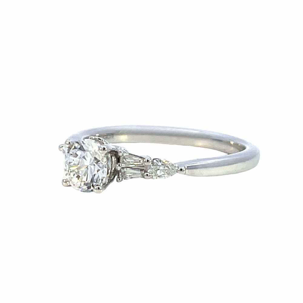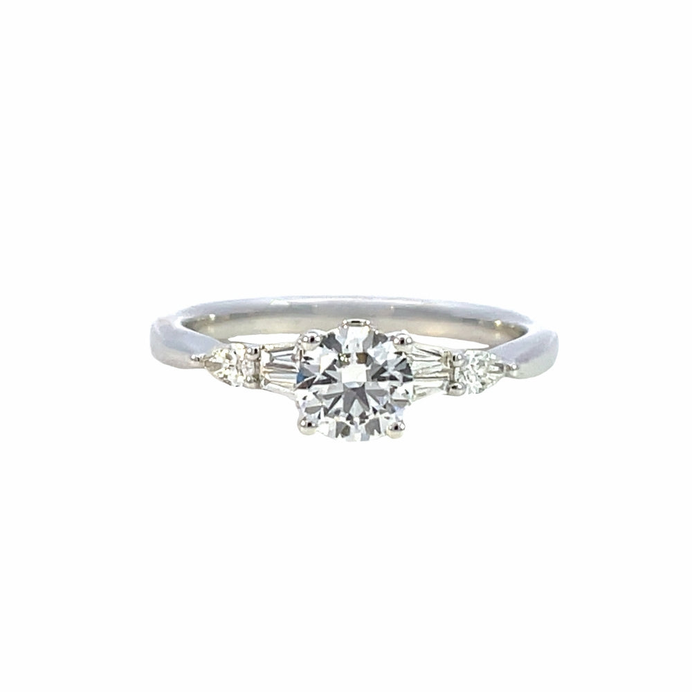 SallyK Collection Semi-Set Engagement Ring with Pear and Baguette Accents