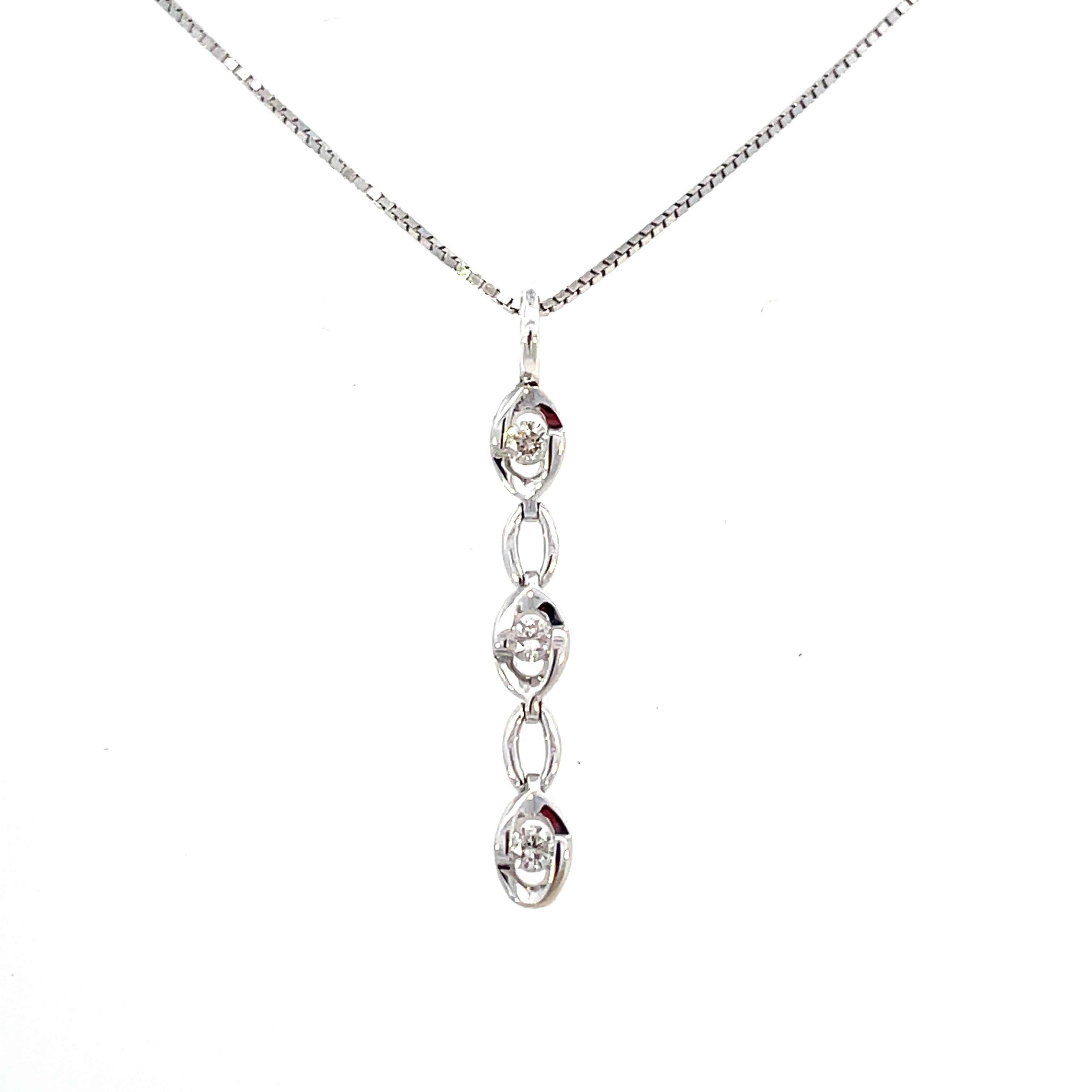 18KW 3 Station Diamond Drop Pendant .18 CTW