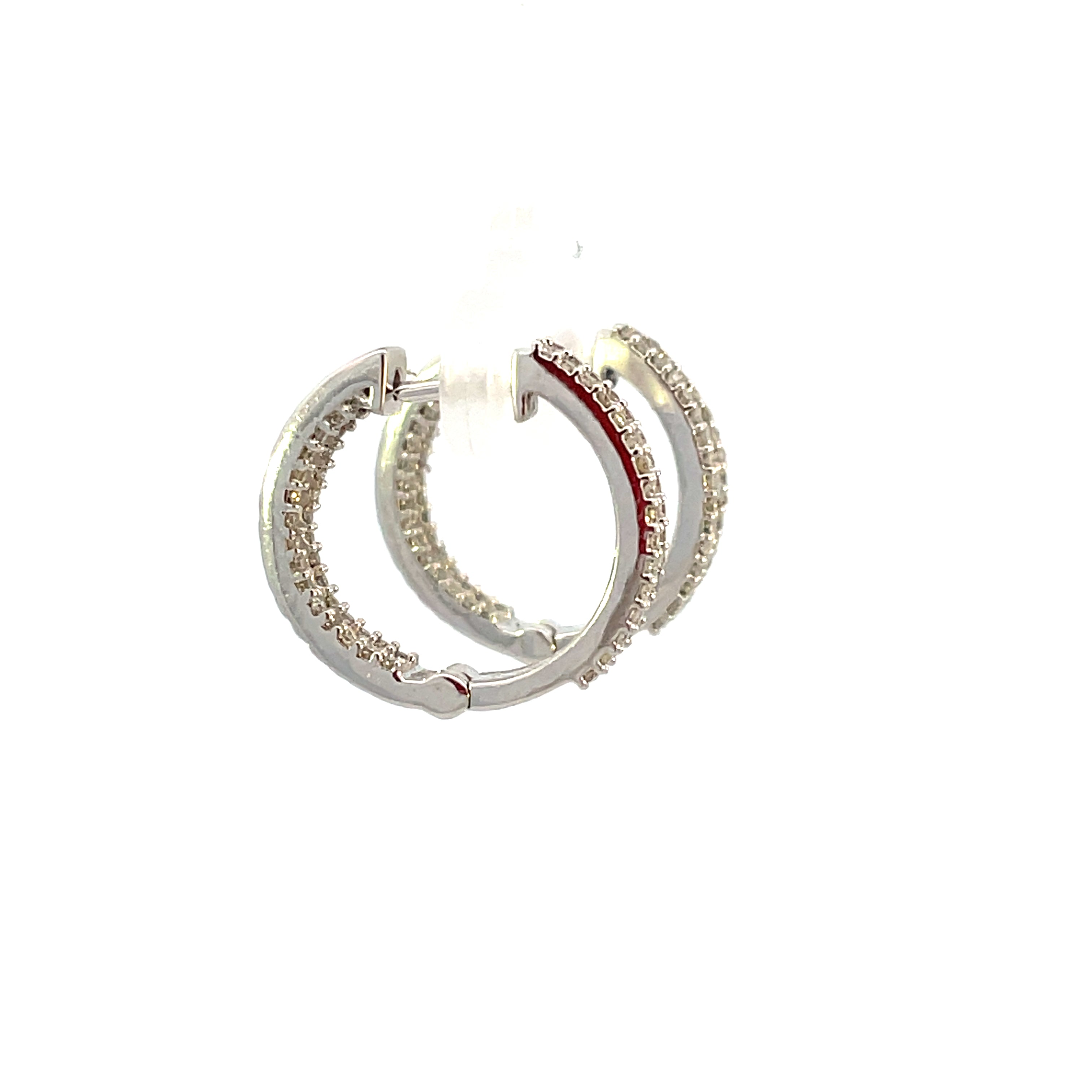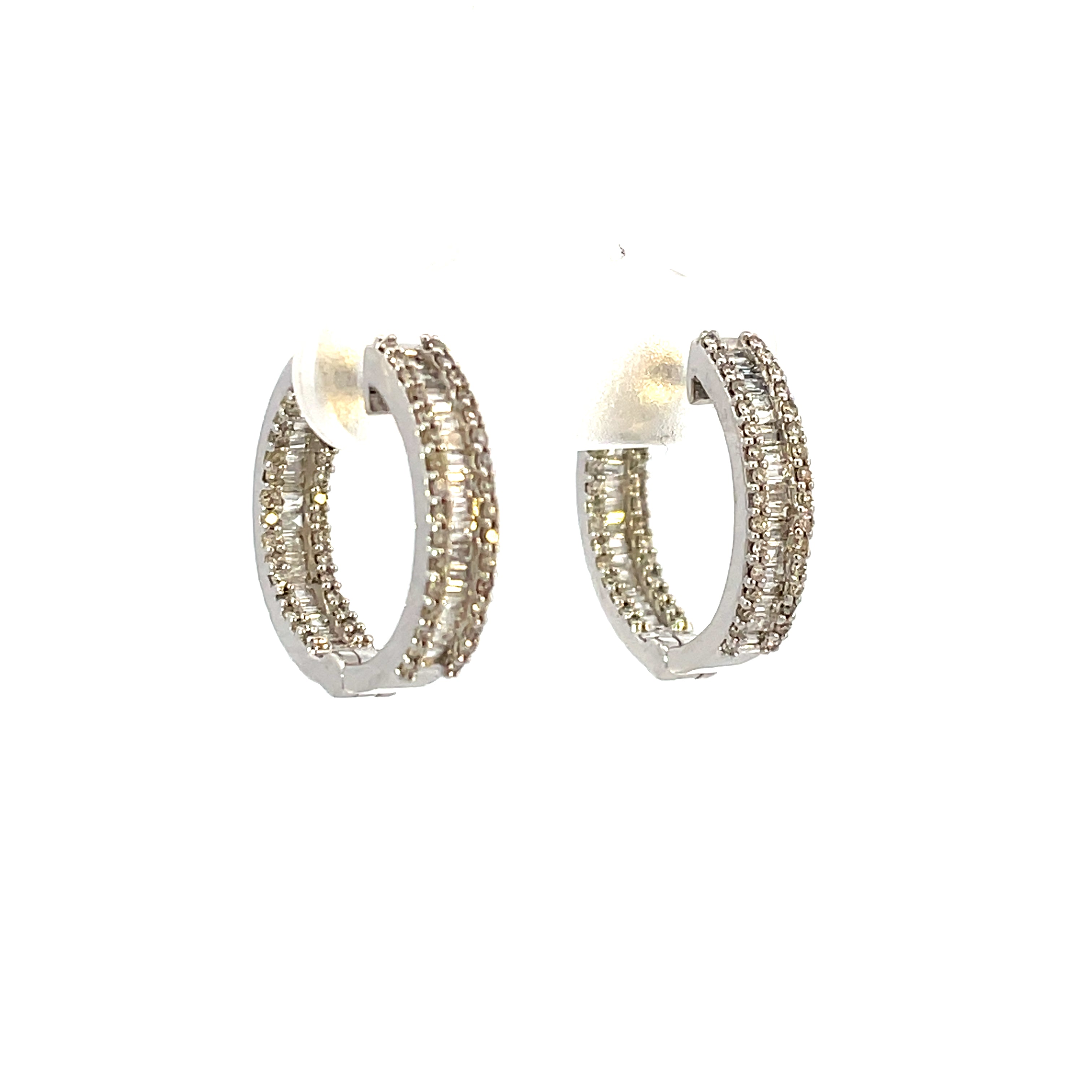 14KW Baguette and Round Inside/Outside Diamond Huggie Hoop Earrings .82 CTW