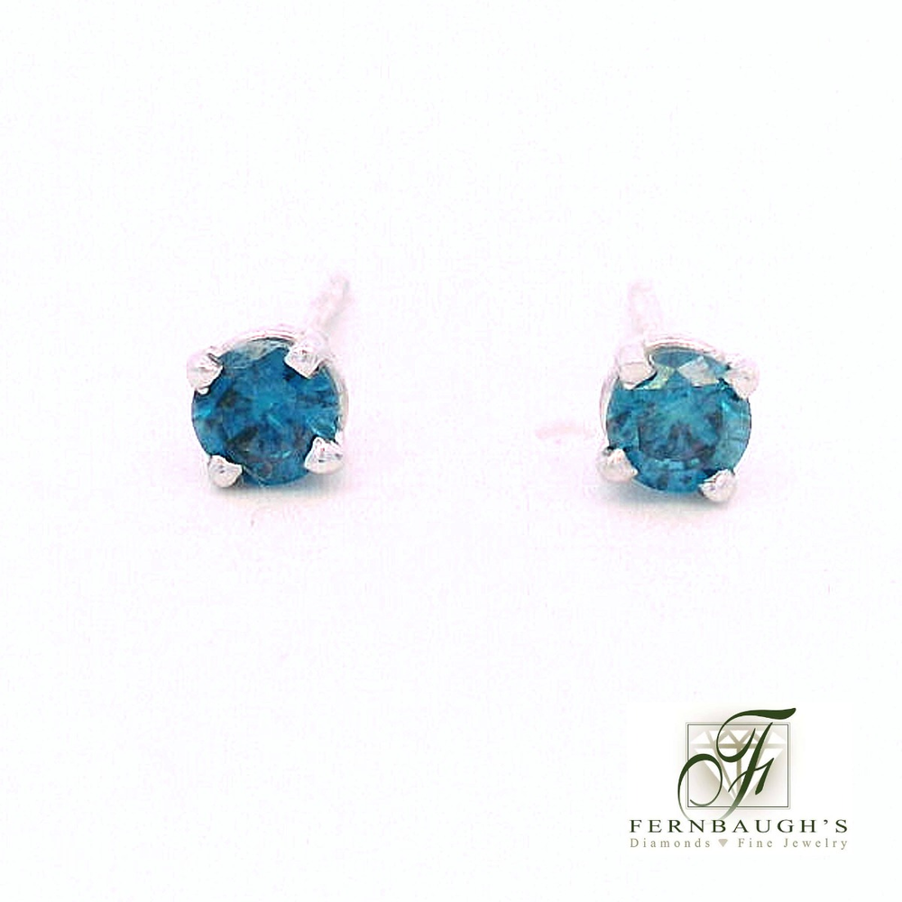 Colored Diamond Stud Earrings Blue Color .35TW