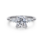 Dela - 14K White Gold Round Three Stone Diamond Engagement Ring