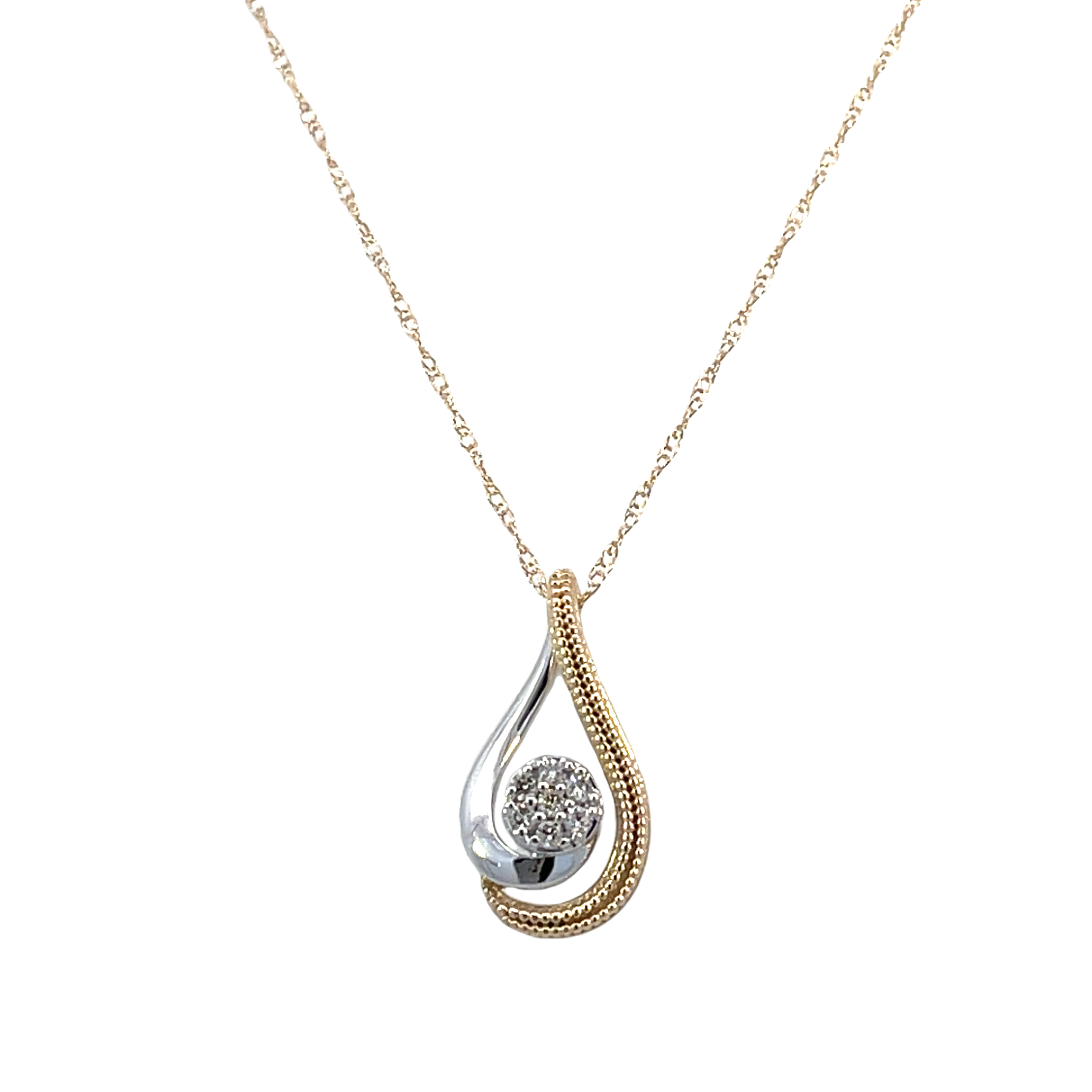 10 KT Two Tone Cluster Loop Diamond Pendant .05 ctw