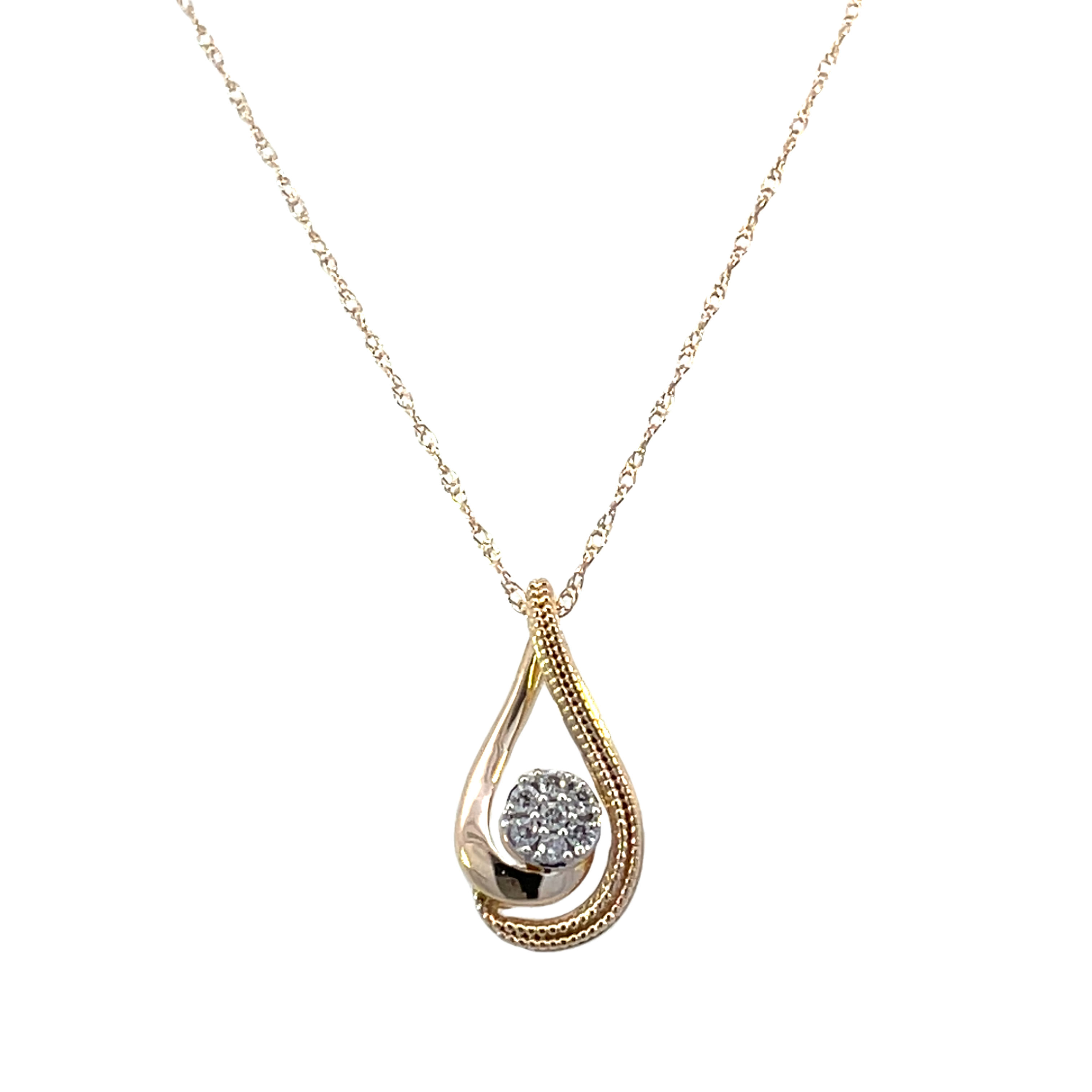 10 KT Yellow Gold Cluster Loop Diamond Pendant .05 ctw
