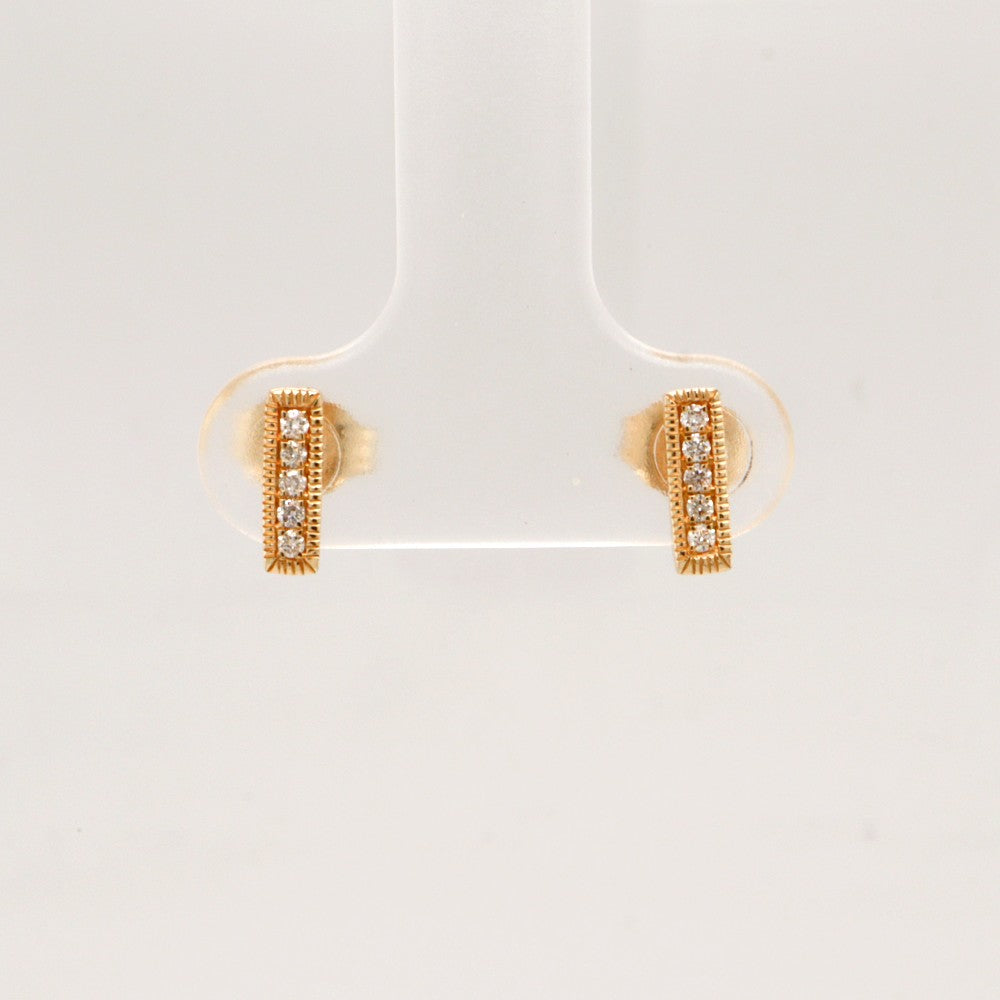 10K Gold and Diamond Bar Earrings with Beaded Edge