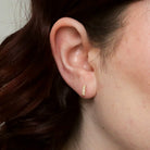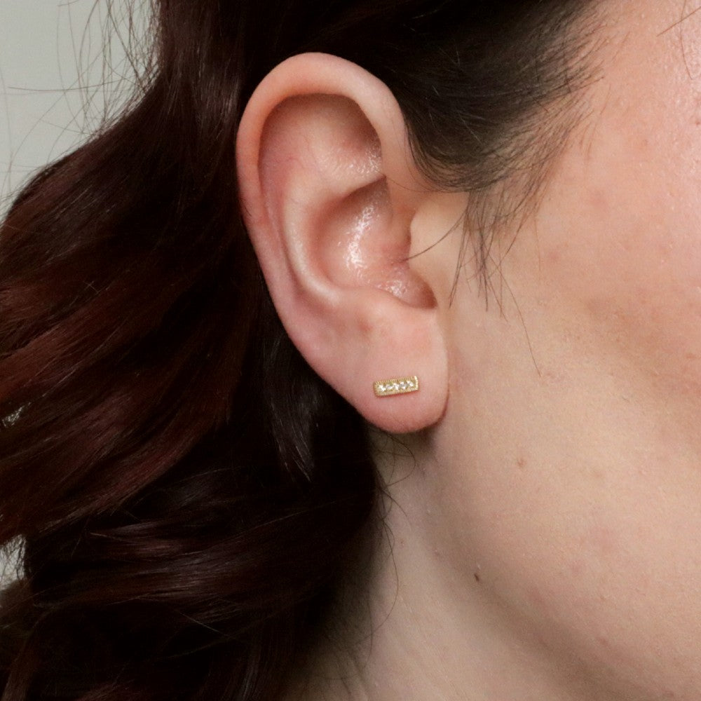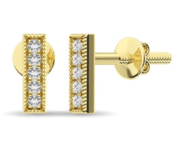 These dainty diamond bar earrings are perfect for layering! Made of solid 10 karat gold, these earrings feature 1/20 carat total weight of diamonds. A beaded edge adds texture.