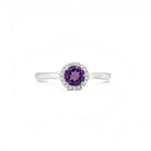 These darling colored gemstone rings make the perfect birthday gift or first piece of colored gem jewelry for your collection. Each 10K White Gold ring features a stunning round gem encircled in a halo of sparkling diamonds.