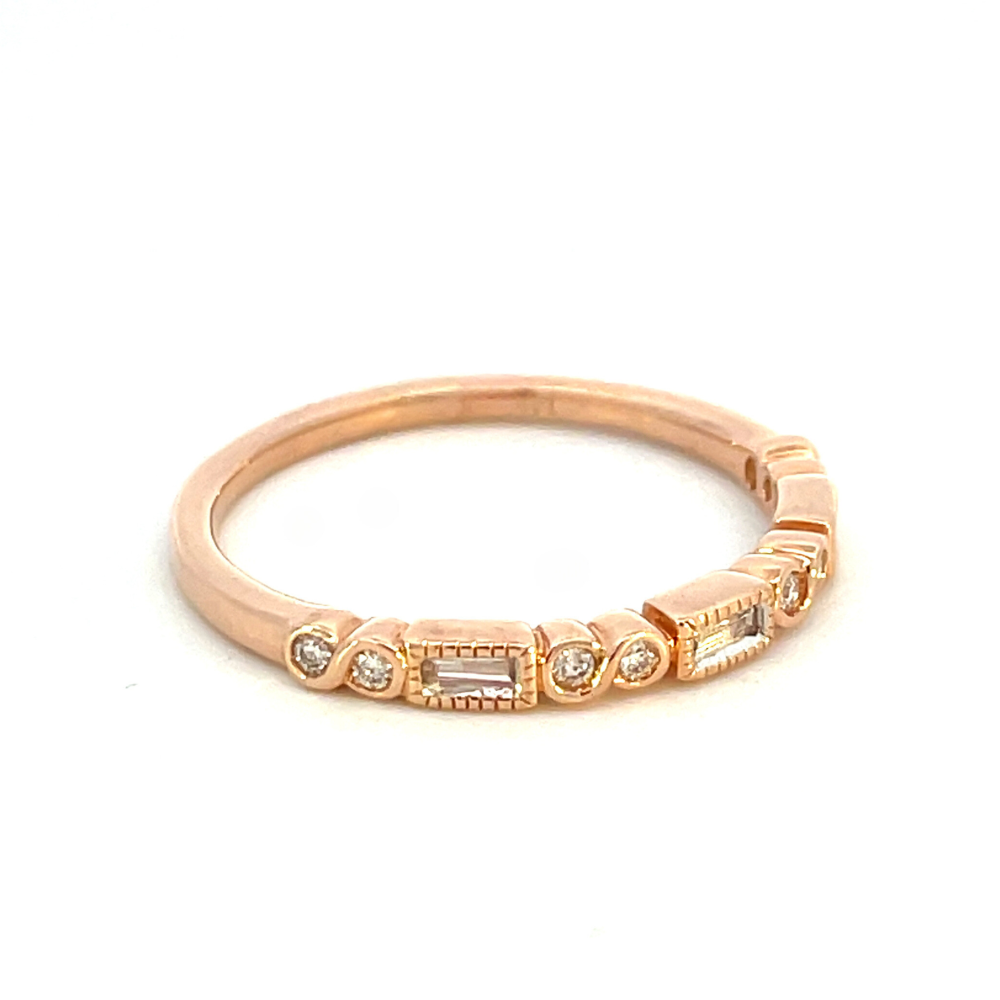 14KR Round and Baguette Diamond Band .10 CTW | Stackable Ring