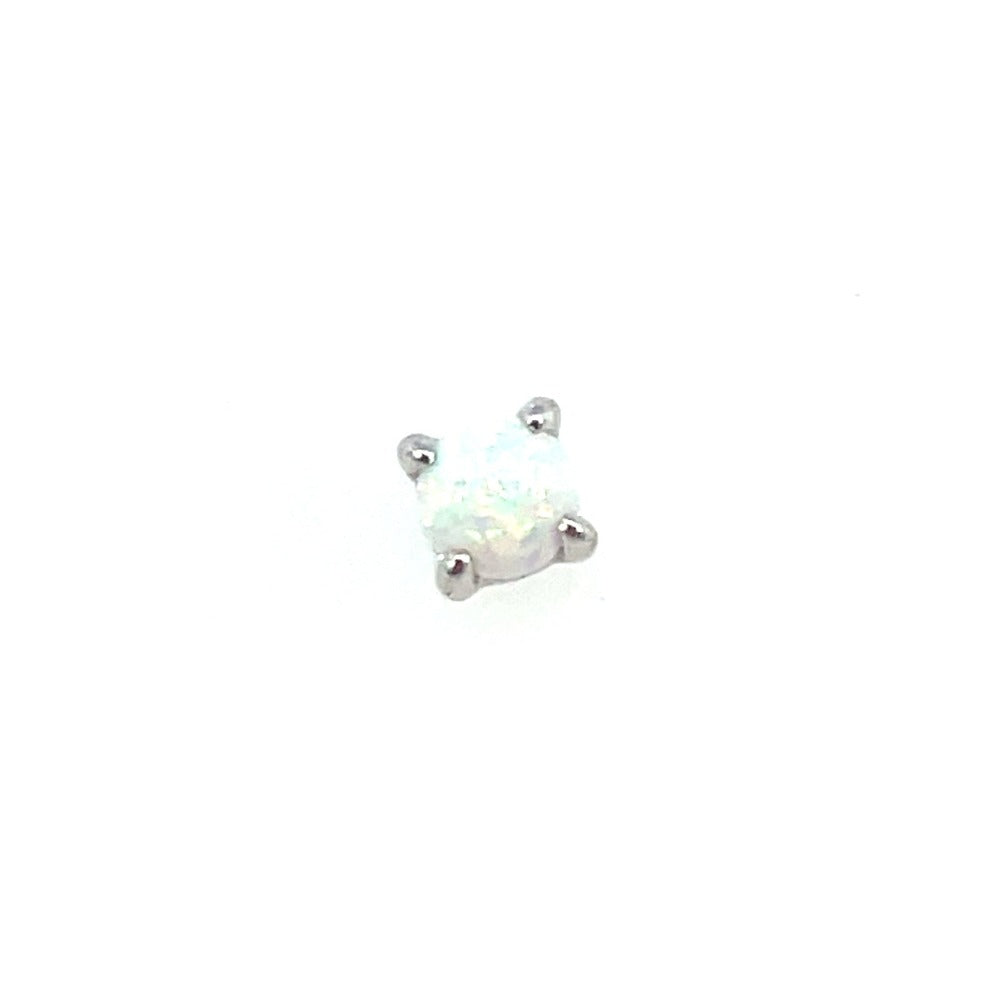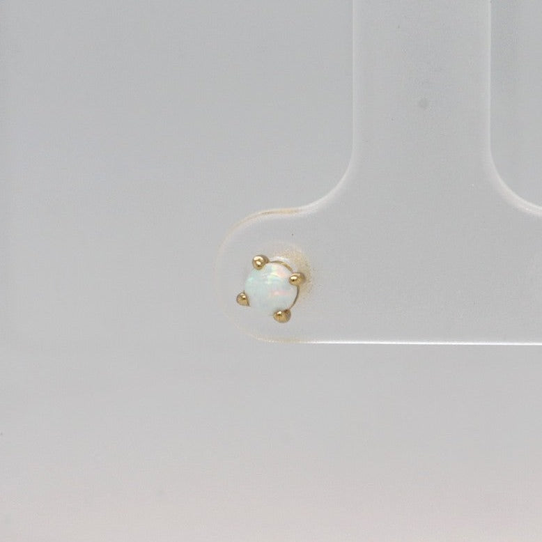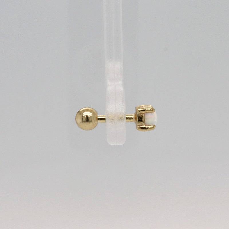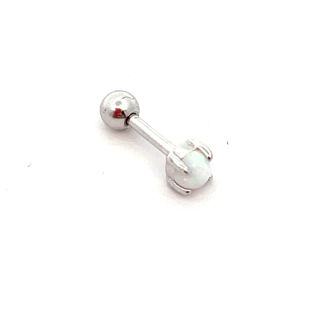 Single earrings are a brand new addition to our Ania Haie line. This earring features a prong set Kyoto Opal stone. The barbell design makes it ideal for cartilage. The back is a ball that screws onto the post so nothing sticks out. Available in plain sterling silver or sterling with a yellow gold overlay.