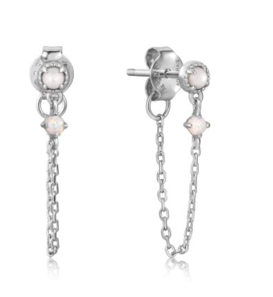 Ania Haie Sterling Silver Mother of Pearl and Kyoto Opal Chain Drop Stud Earrings