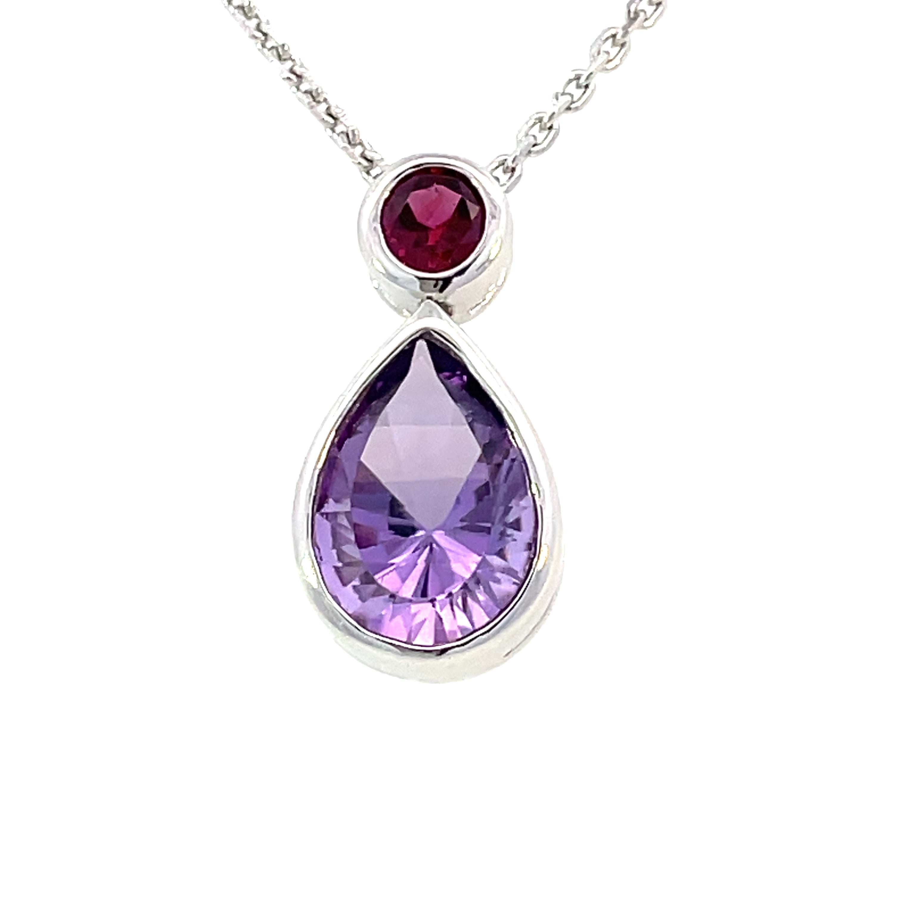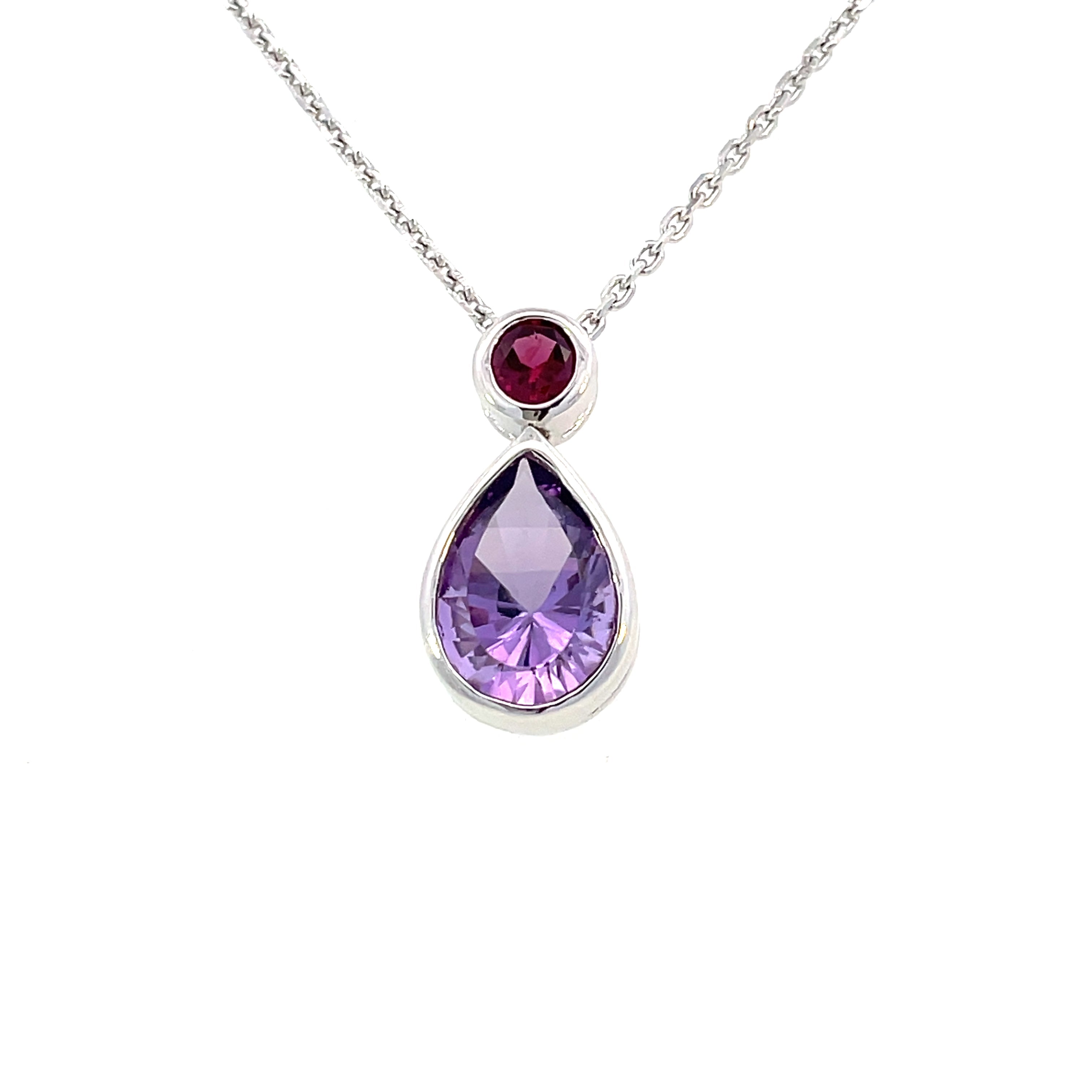 Sterling Silver Pear and Round Shaped Amethyst Pendant | Fernbaugh's Jewelers
