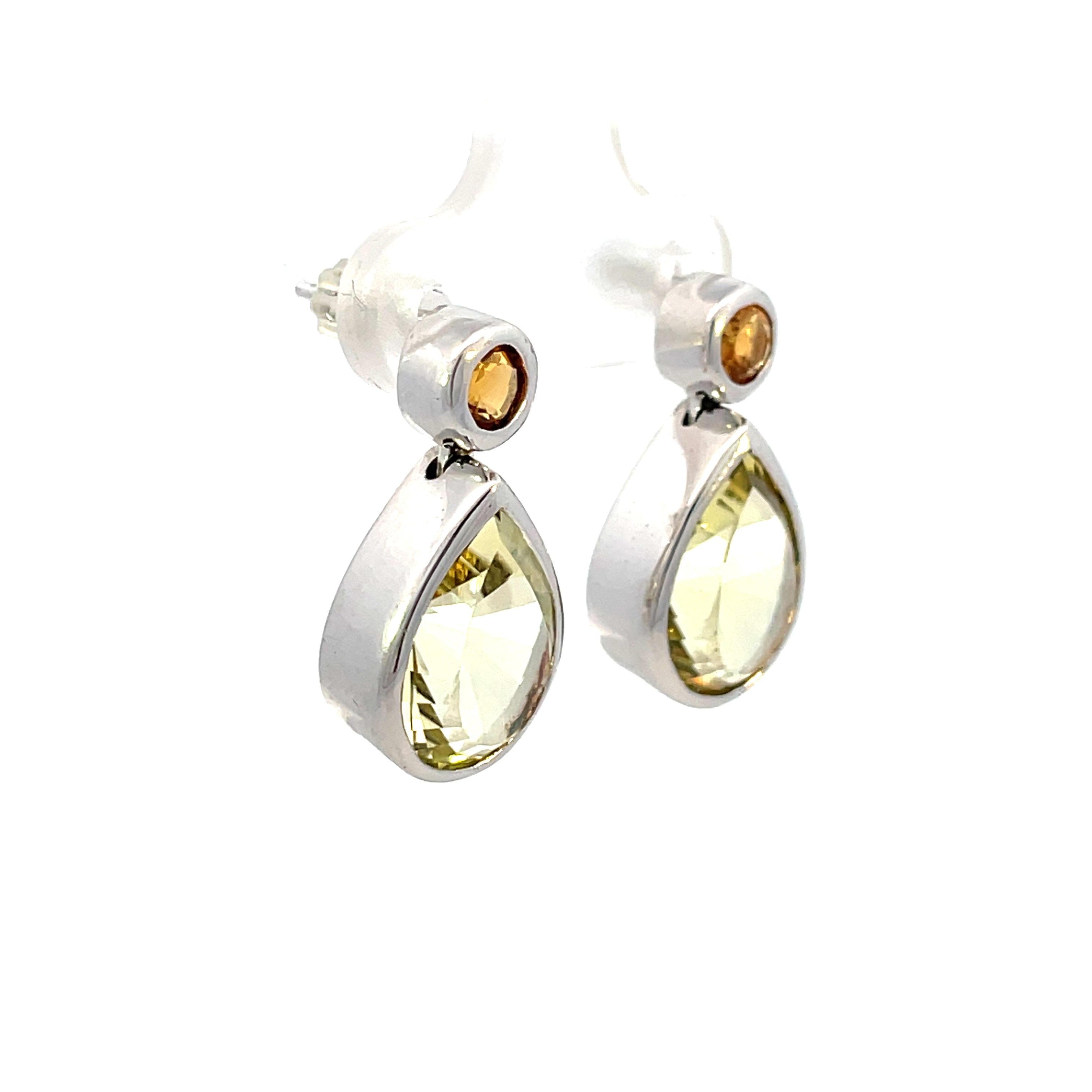 Sterling Silver, Lemon Quartz and Citirine Dangle Drop Earrings | Fernbaugh's Jewelers