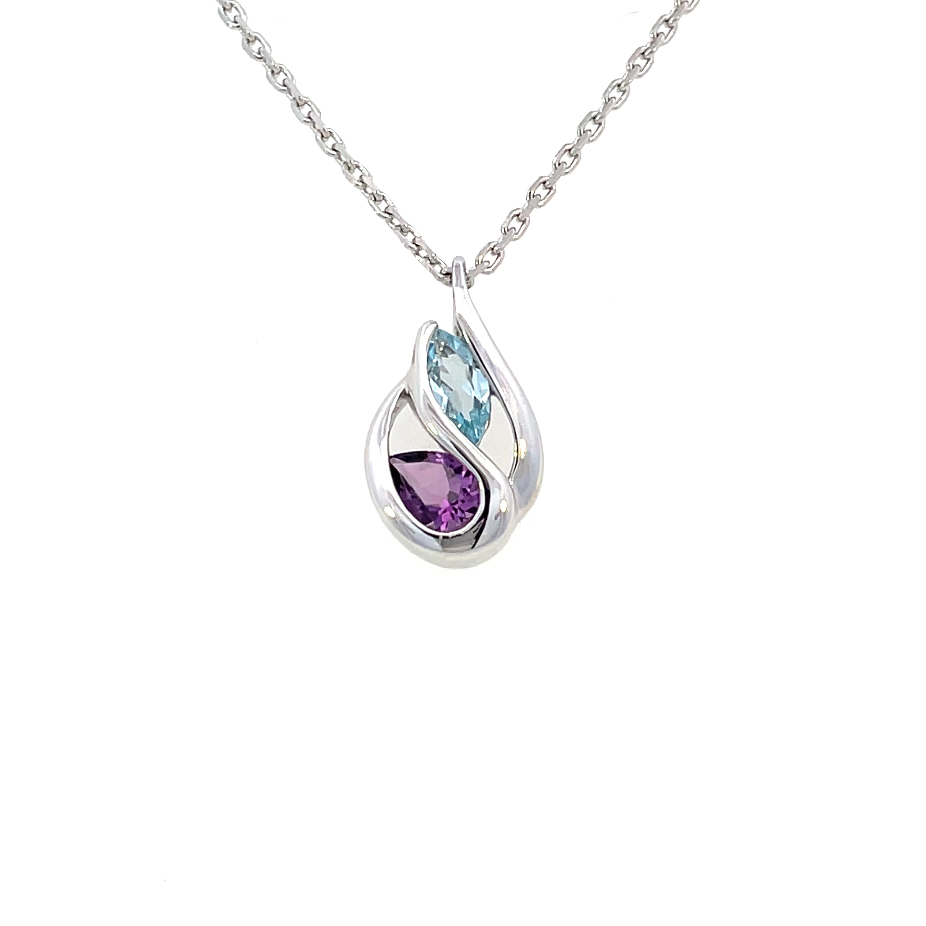 Sterling Silver Marquise Blue Topaz and Pear Amethyst Pendant | Fernbaugh's Jewelers