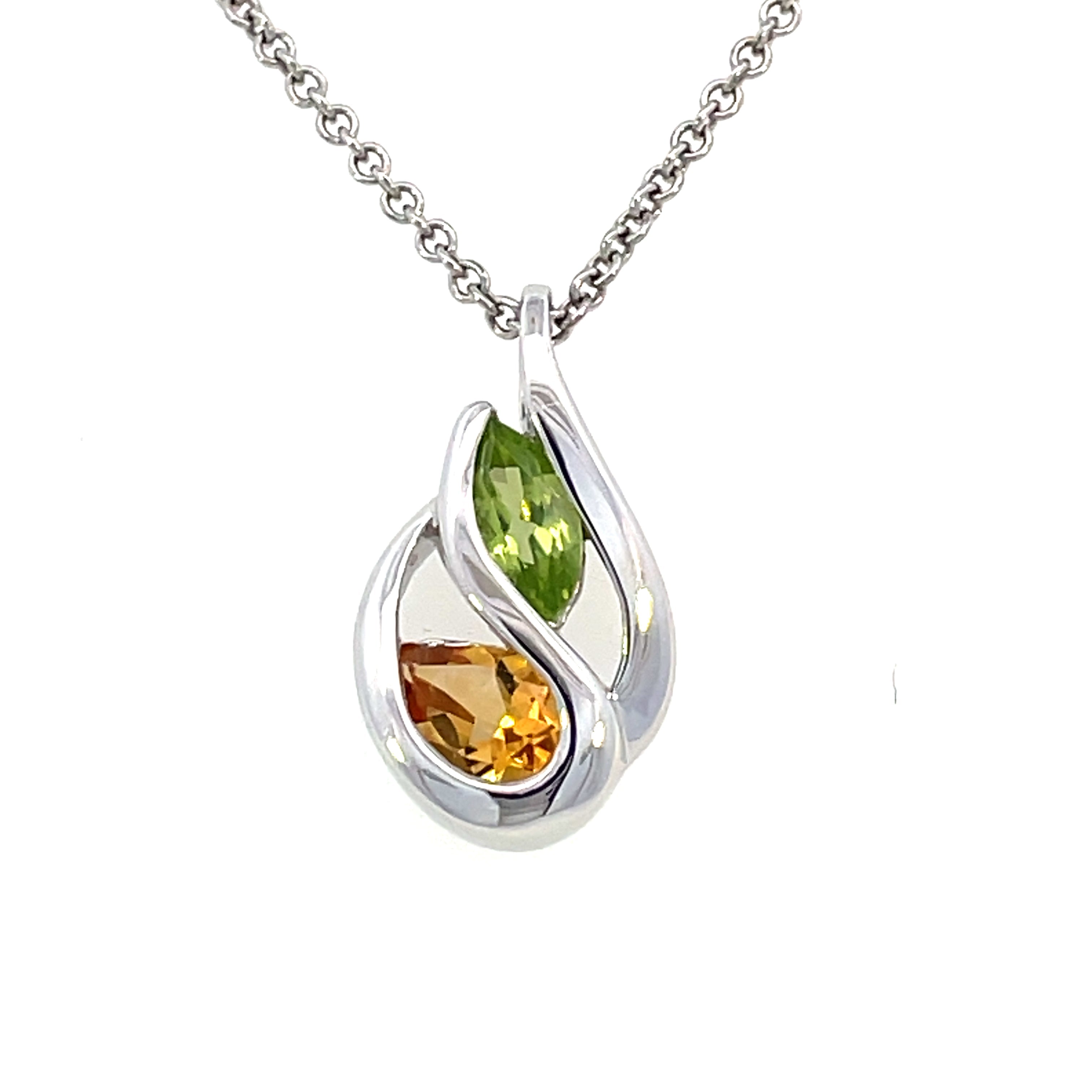Sterling Silver Marquise Peridot and Pear Citrine Pendant | Fernbaugh's Jewelers