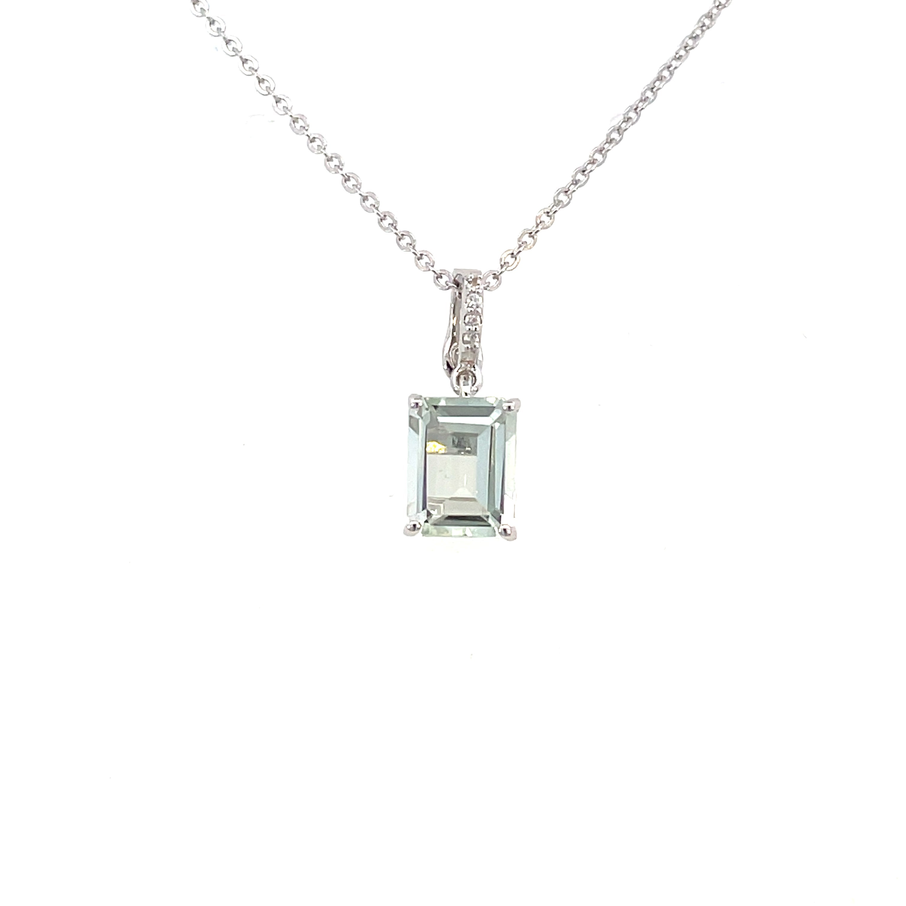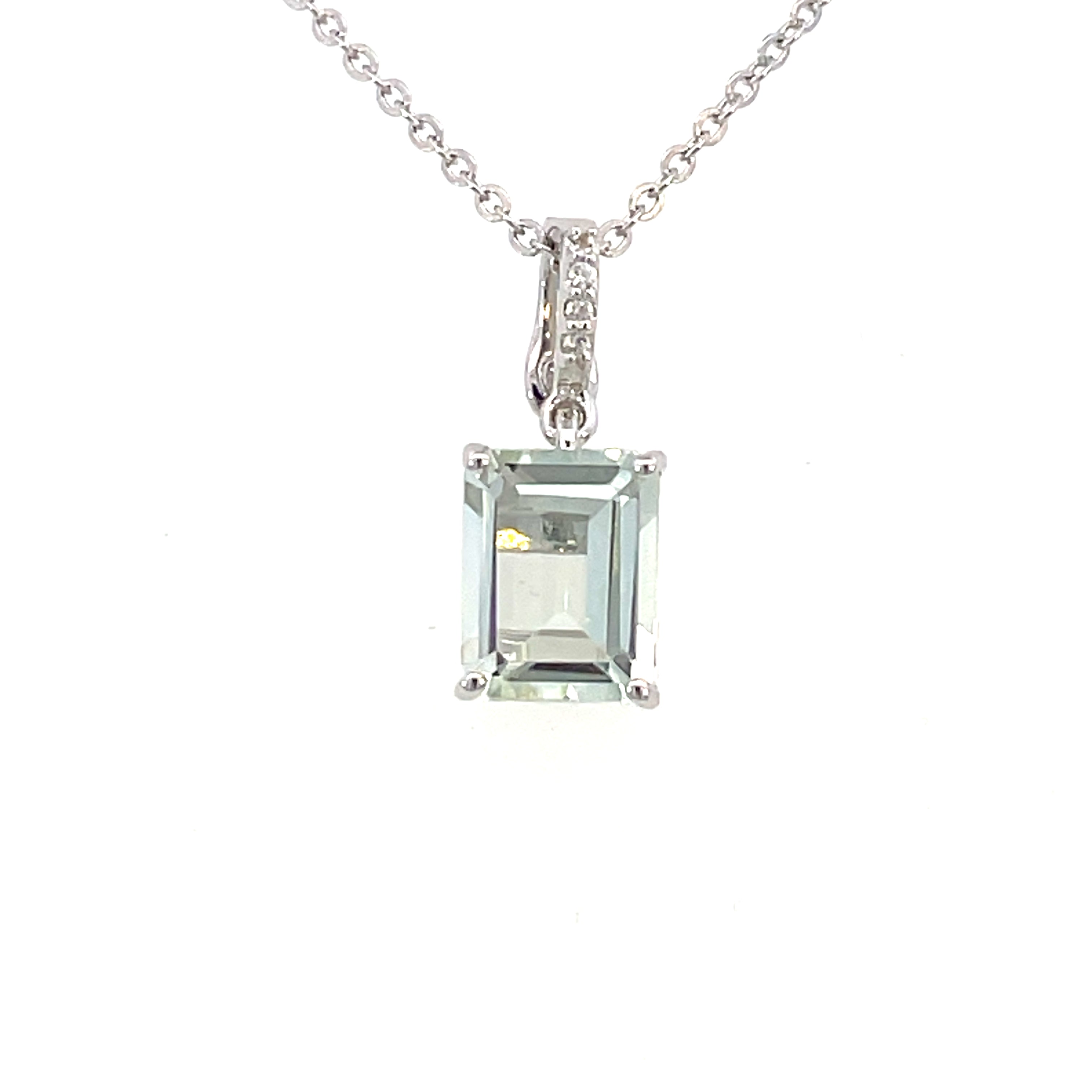 Sterling Silver Rectangle Green Amethyst Pendant with White Topaz Accents | Fernbaugh's Jewelers