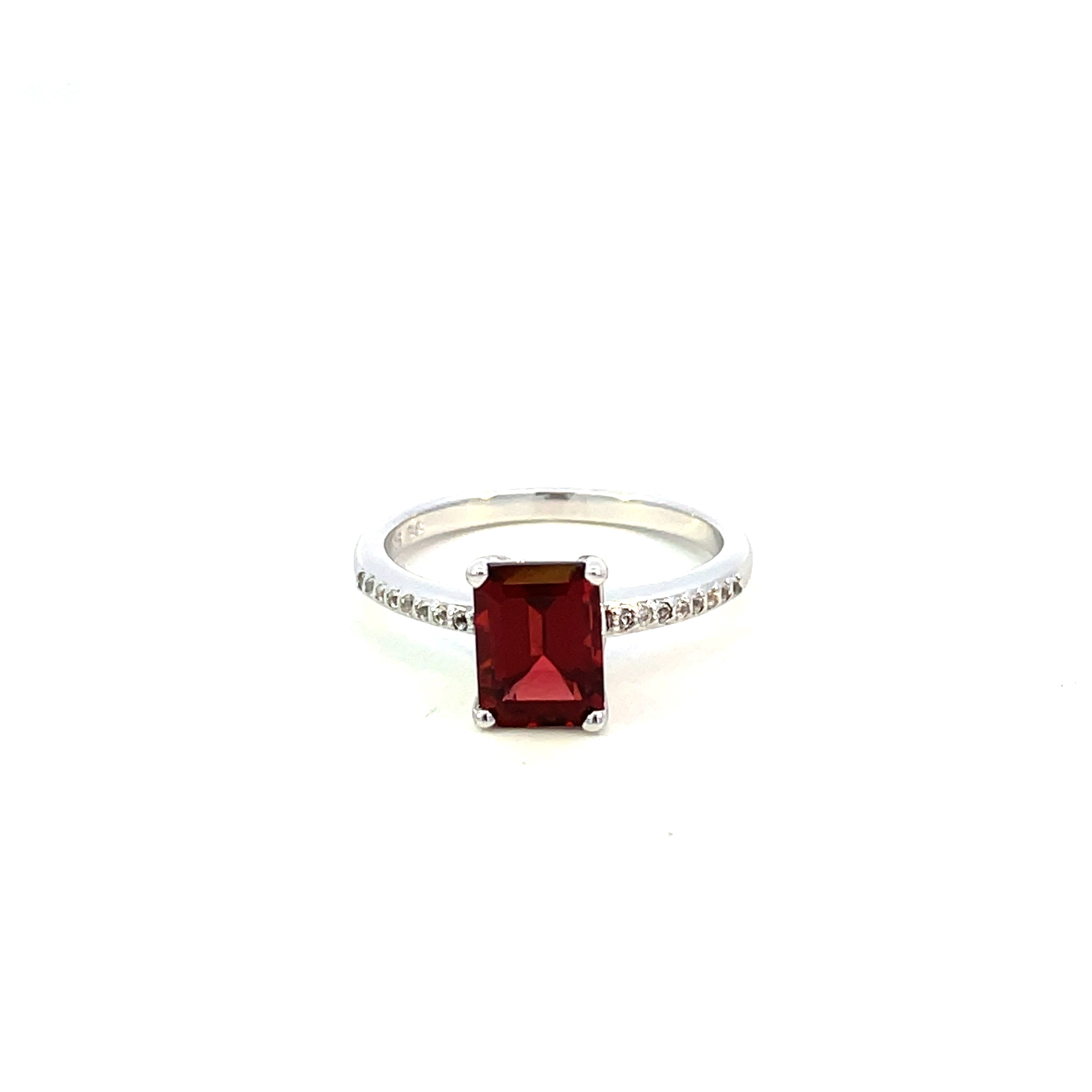 Sterling Silver Emerald Cut Garnet Ring with White Topaz Accents | Fernbaugh's Diamonds