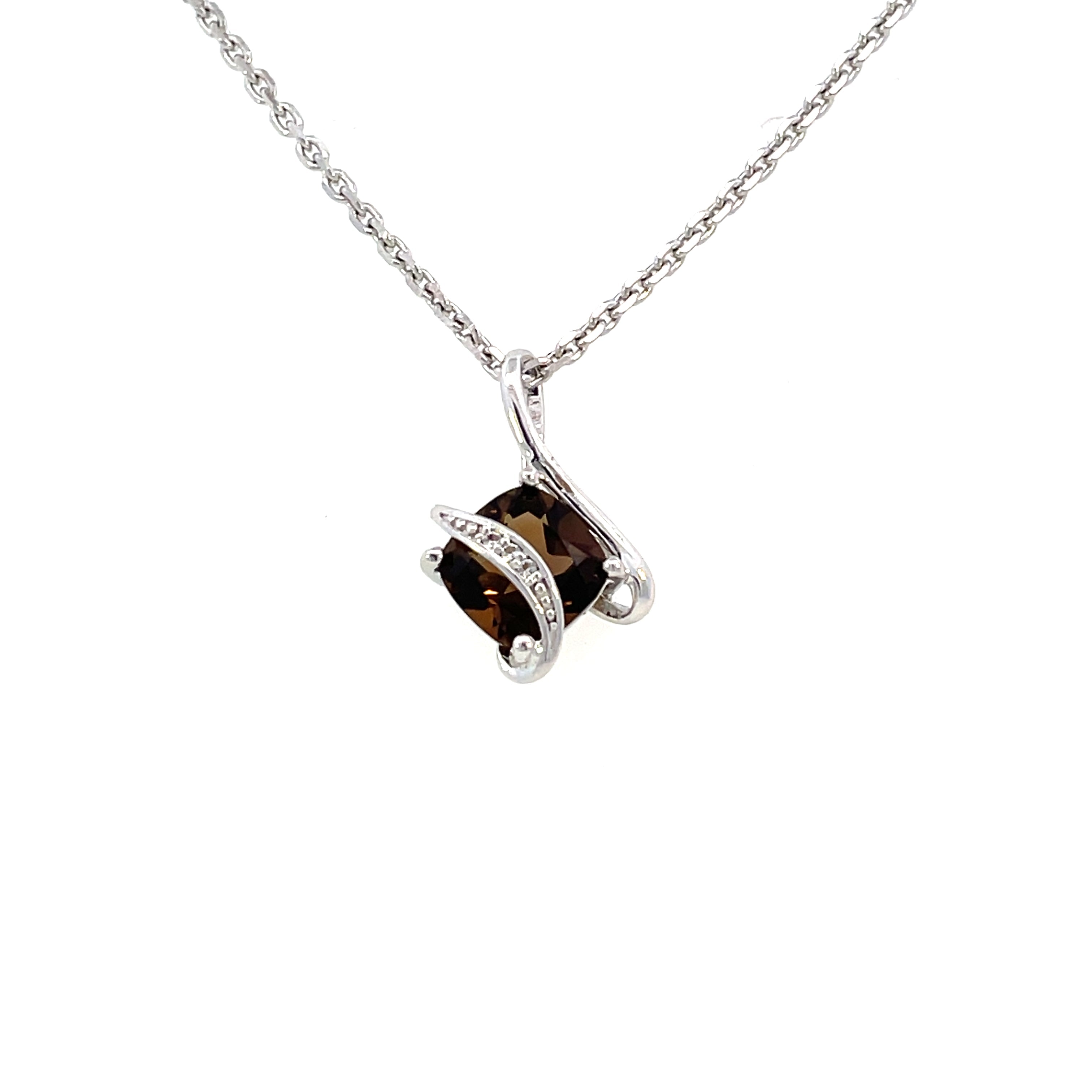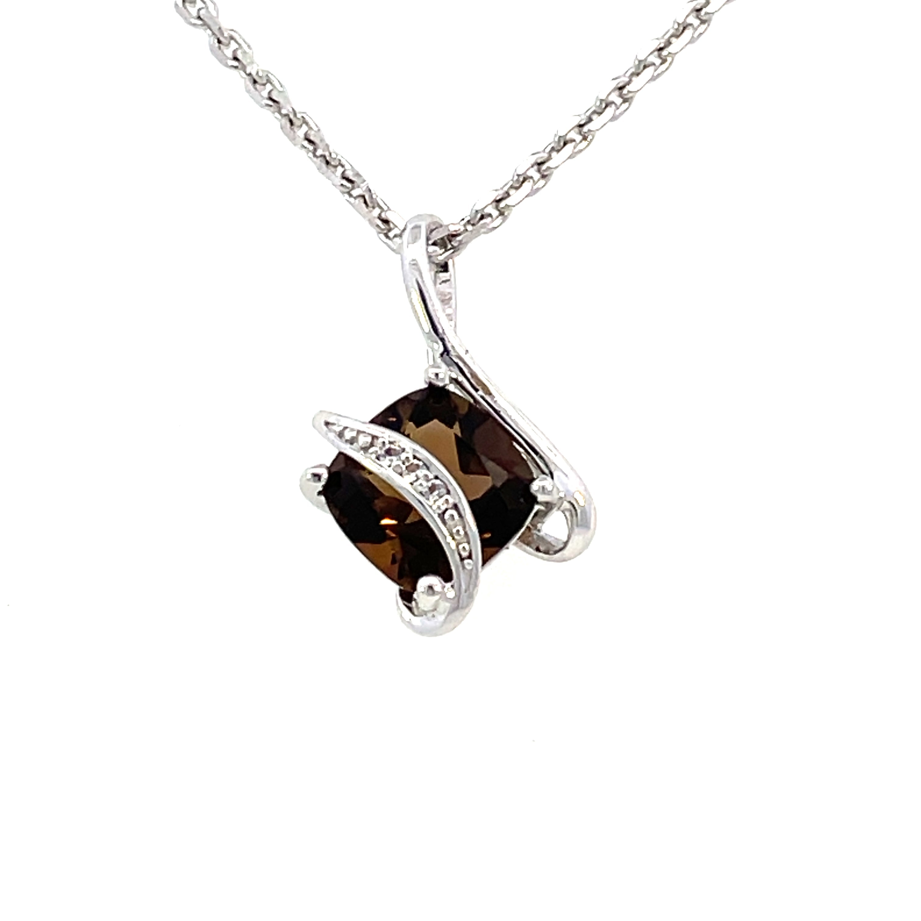 Sterling Silver Cushion-Cut Chocolate Quartz Pendant with Round White Topaz Accents | Fernbaugh's Jewelers