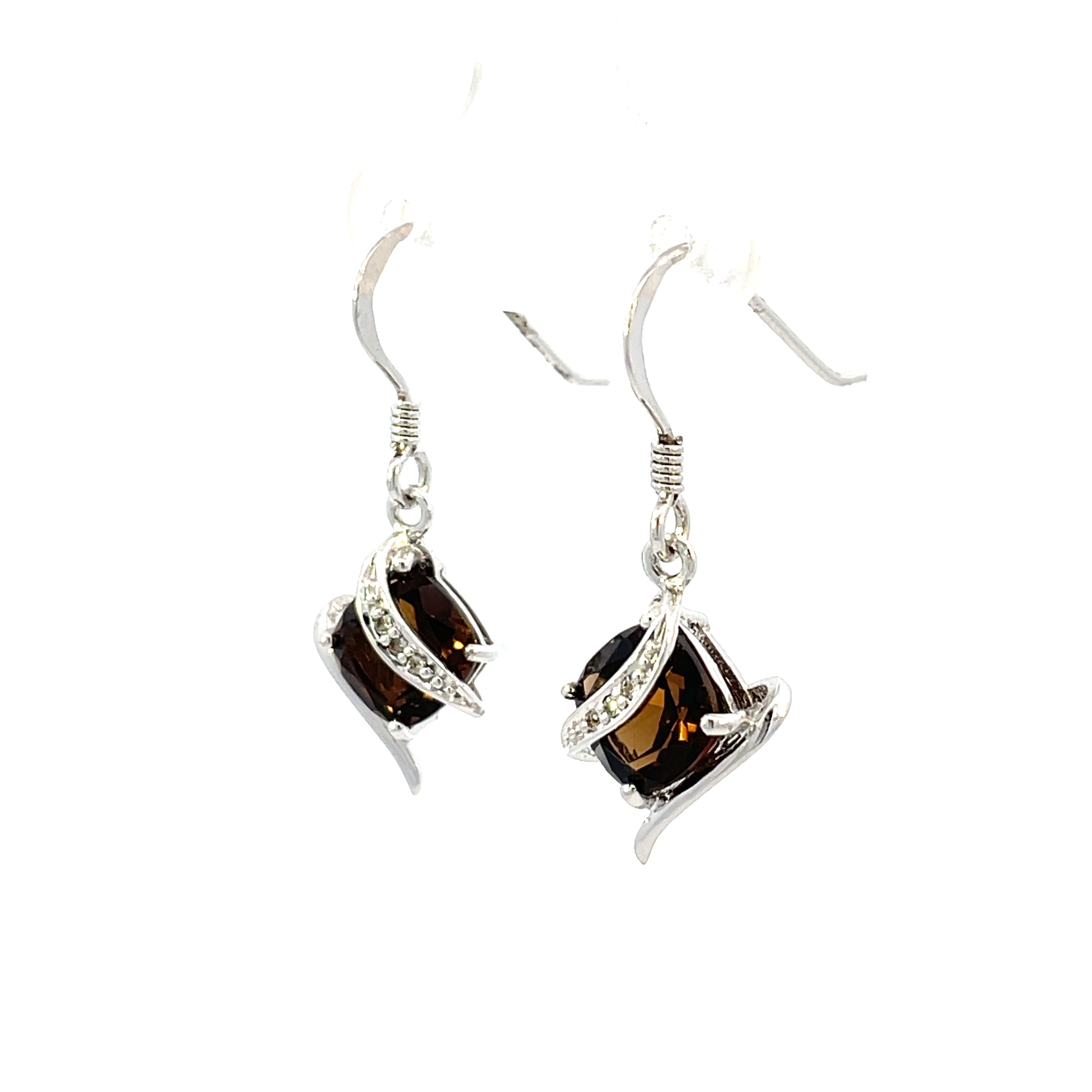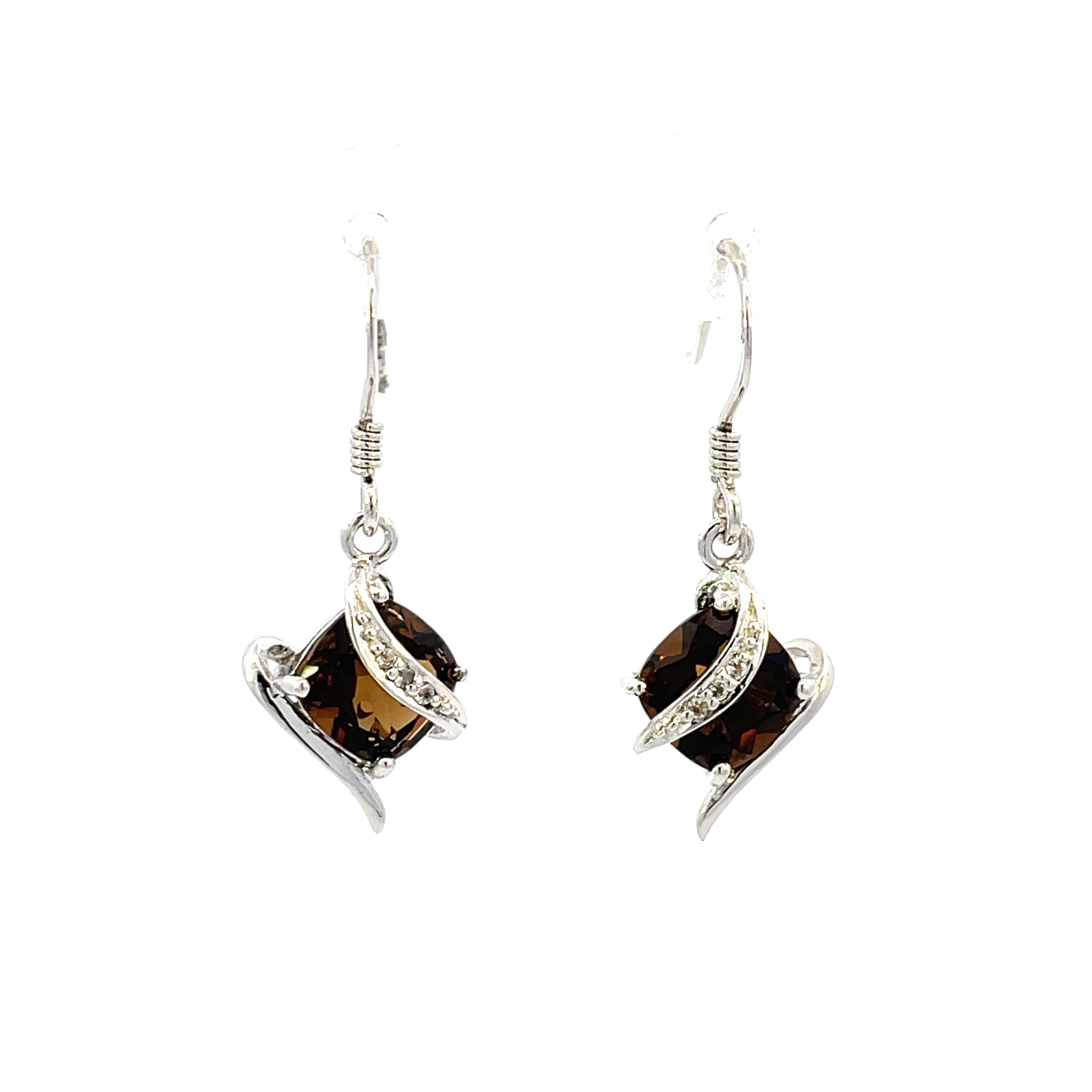 Sterling Silver and Chocolate Quartz Dangle Earrings with White Topaz Accents | Fernbaugh's Jewelers