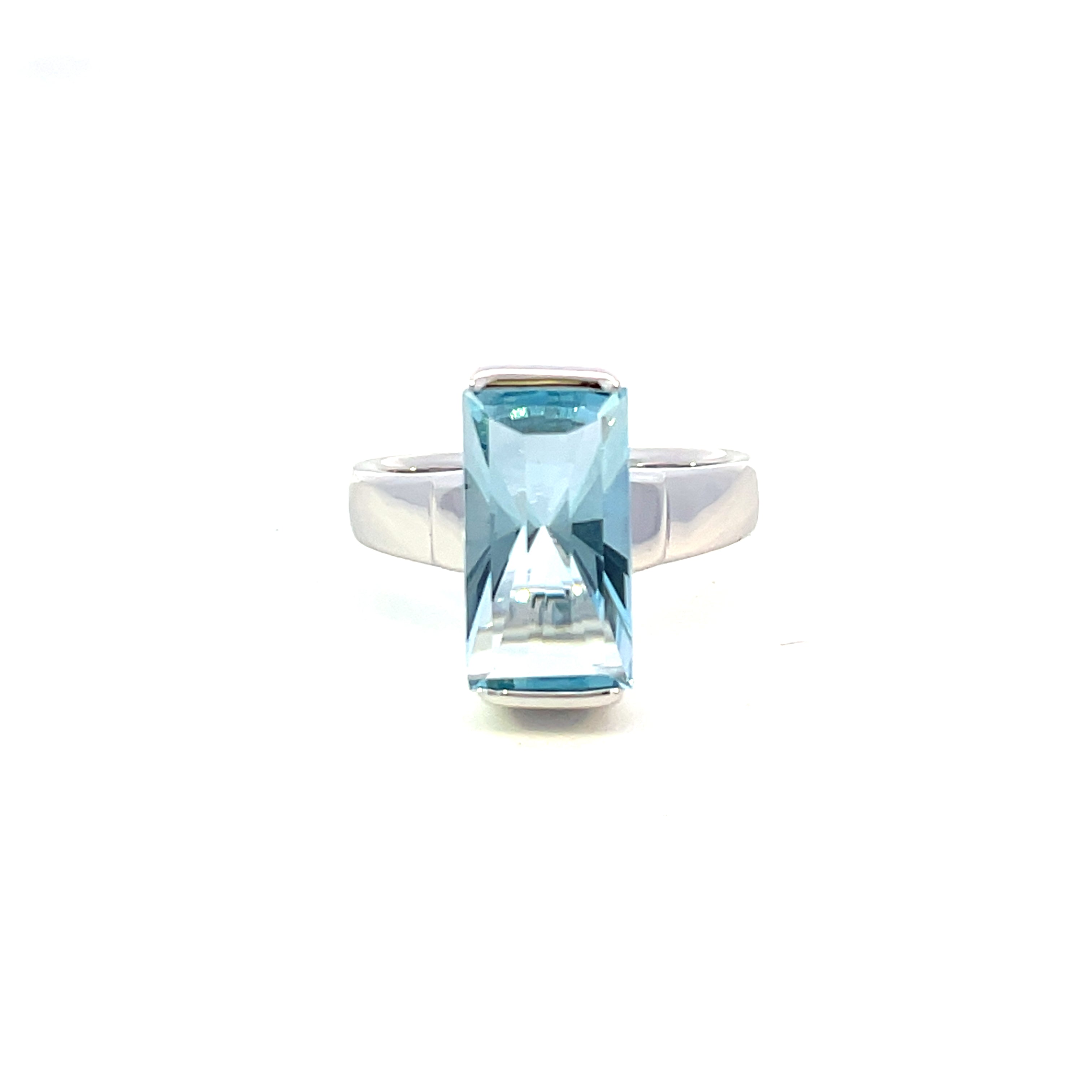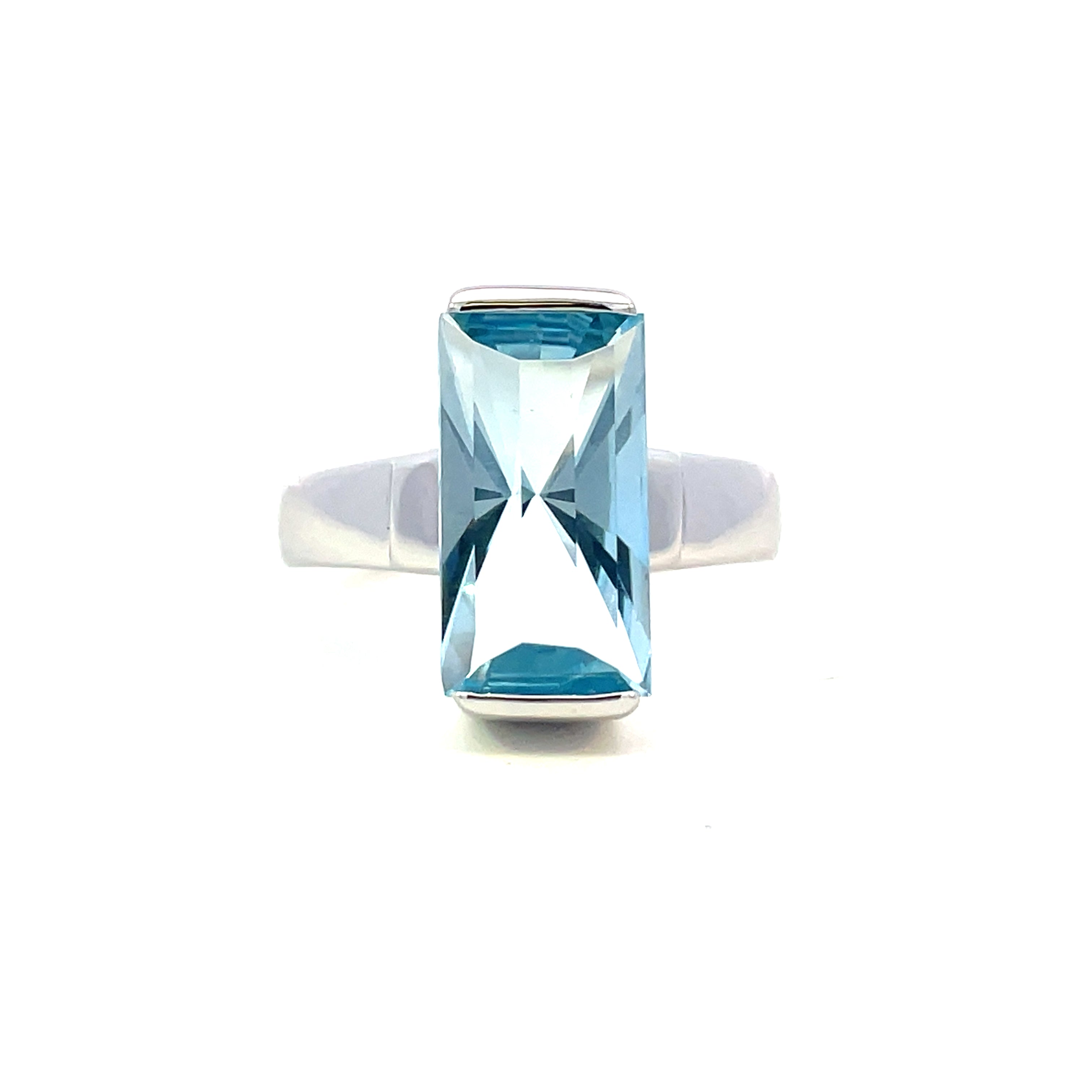 Sterling Silver Rectangle Cut Blue Topaz Ring | Fernbaugh's Jewelers