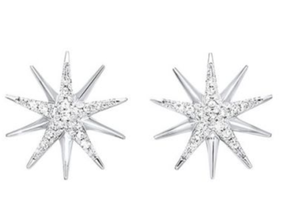 These fun fashion earrings feature 1/10 carat total weight of diamonds set in sterling silver. Love this look? Consider the matching sterling silver starburst necklace, SKU: PD34407-SSSC.