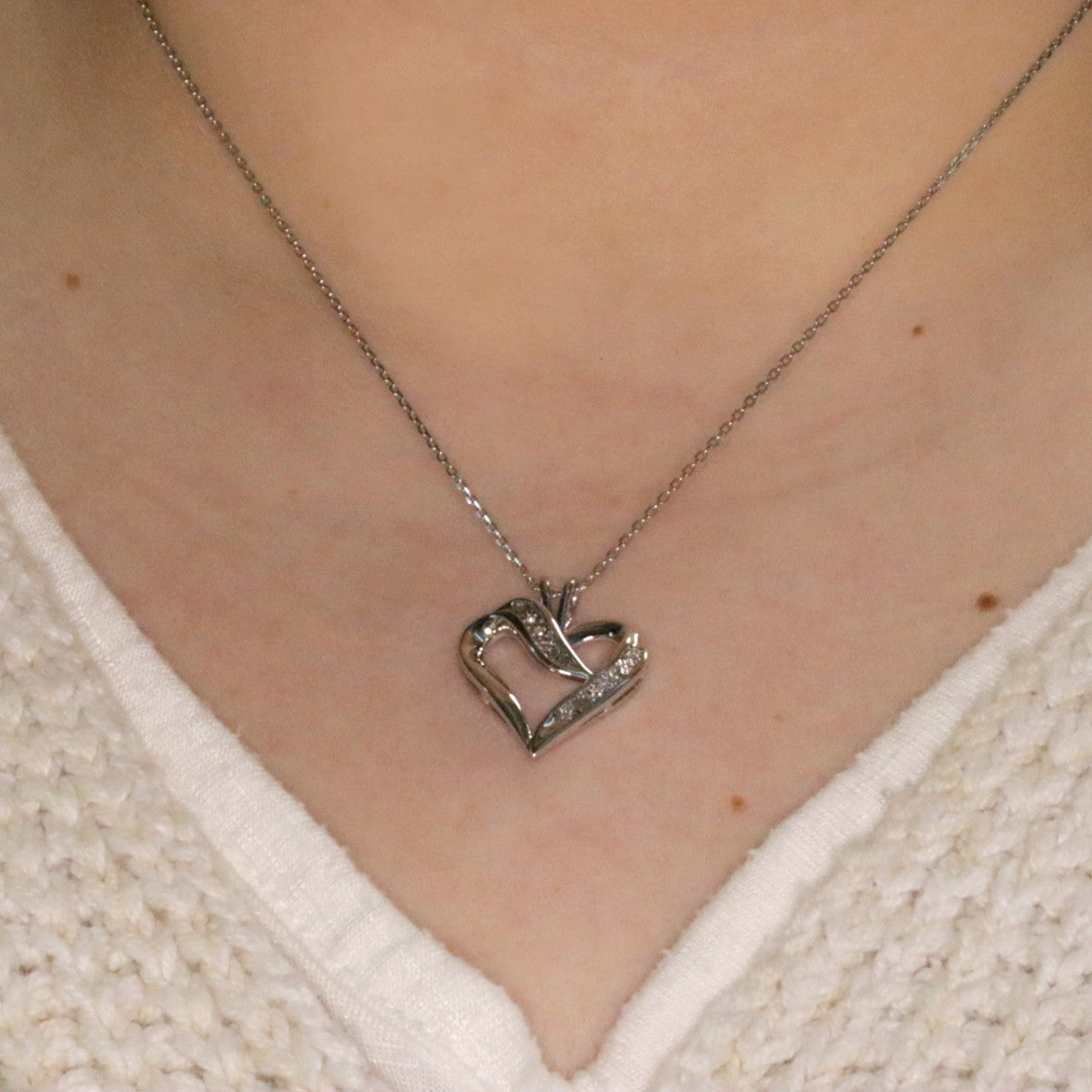 Sterling Silver & Diamond Open Ribbon Heart Pendant