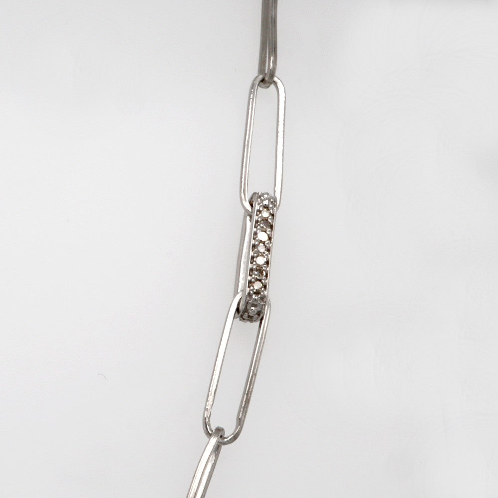 Everyone needs a classic chain that matches everything. Is this one yours? This solid sterling silver chain features paperclip style links. One link is set with 1/10 carat total weight of diamonds.