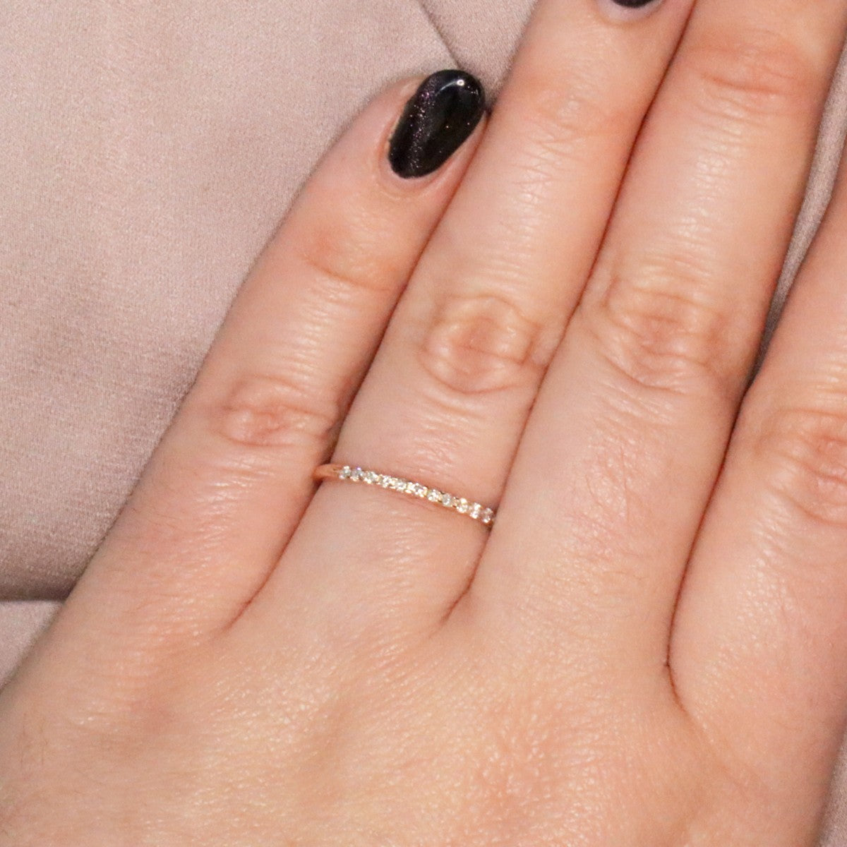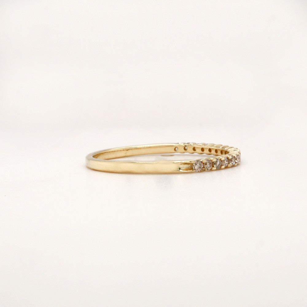 This stunning 10K Gold Band with a shared prong setting features 1/7CTW of diamonds and is a stackable ring that can be mixed and matched with a variety of stunning bands. These stackable rings are the perfect jewelry choice for you or your loved one.
