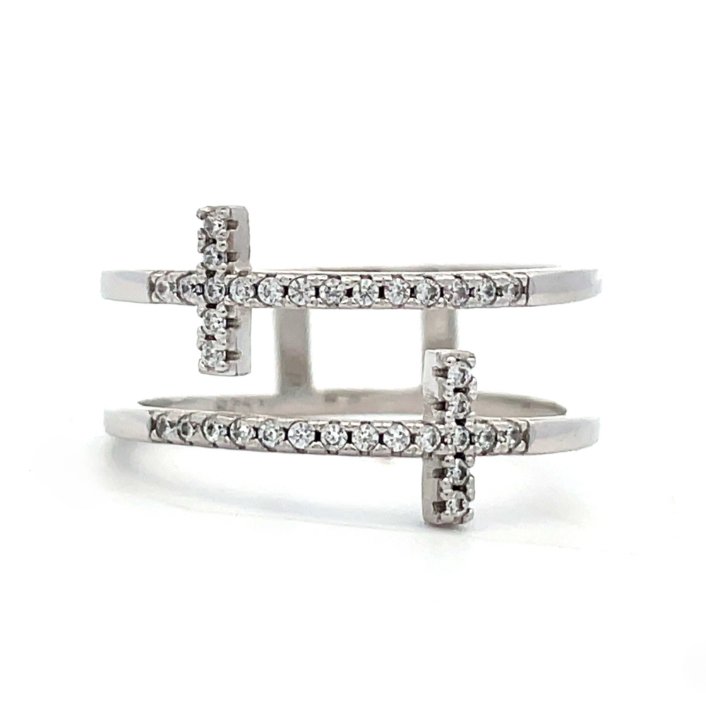 Sterling Silver Double Cross Ring with Simulated Diamonds | Fernbaugh's Jewelers