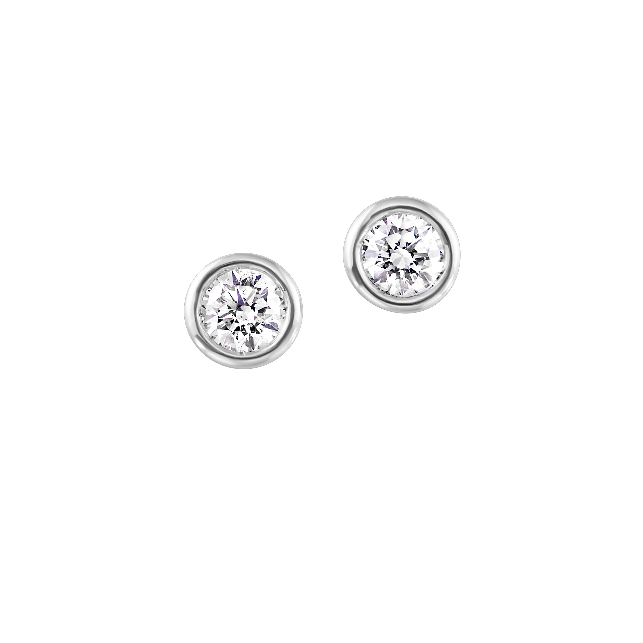 These timeless 14 karat white gold earrings are the perfect staple piece to add to your jewelry collection. Available in your choice of 1/4, 1/2, 3/4 and 1 carat total weight. Bezel setting with standard friction posts and backs