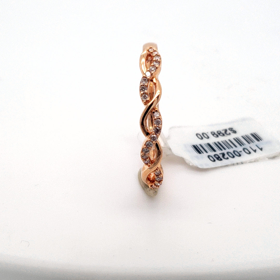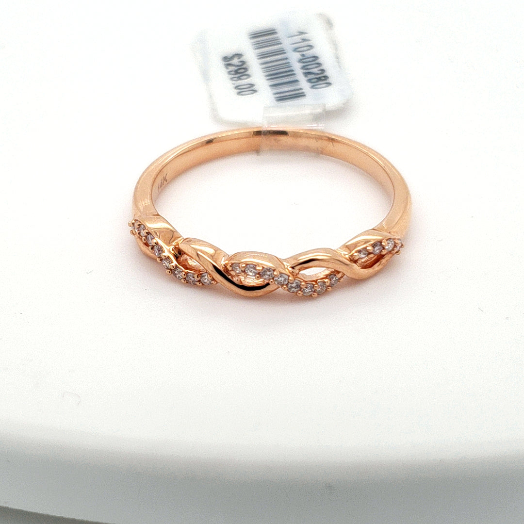 This beautiful 10K Rose Gold Twisted Diamond Band (1/20CTW) is a stackable ring that can be mixed and matched with a variety of stunning bands. These stackable rings are the perfect jewelry choice for you or your loved one.