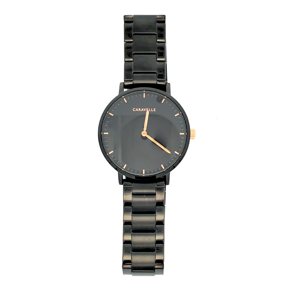 Caravelle by Bulova Black Tone Watch with Rose Gold Tone Markers | Fernbaugh's Jewelers