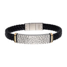 Black Leather and Stainless Steel ID Bracelet with Hammered Finish | Fernbaugh's Jewelers