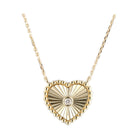 This charming heart pendant features a unique design to ensure a glittering look every day. Not only will the pendant catch the light in spectacular ways, but the bezel set diamond at its core will help add a sparkle to your day.