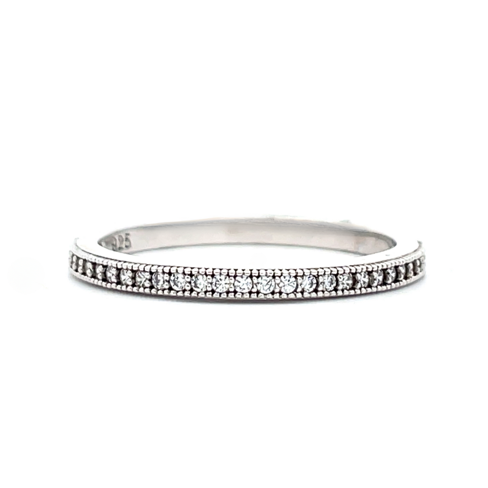 Sterling Silver Three Stone Wedding Set with Simulated Diamonds | Fernbaugh's Jewelers