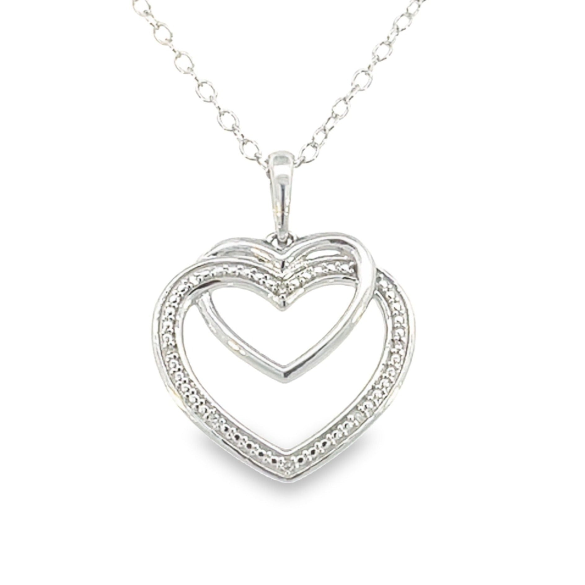 Nothing says "I love you" quite like a heart! This adorable necklace features an interlocked double heart design set with diamonds. Crafted of brightly polished sterling silver and suspended from an 18 inch chain.