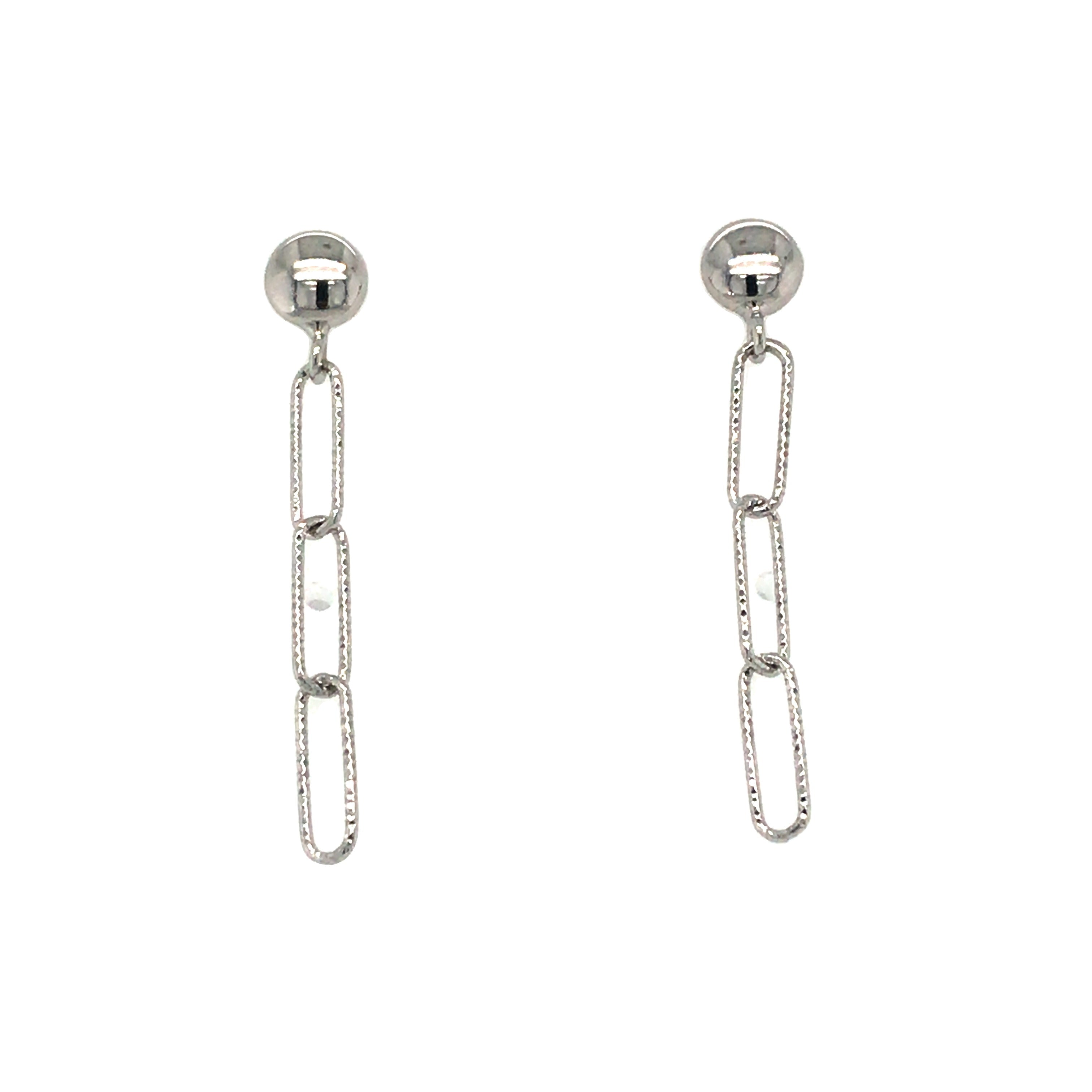 Sterling Silver Diamond Cut Dangle Drop Paperclip Earrings