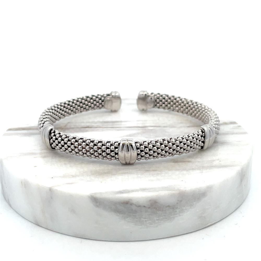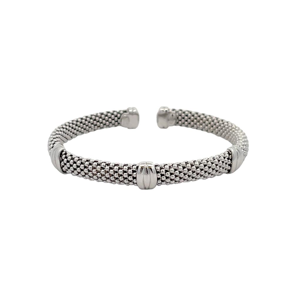 Sterling Silver Mesh Flex Cuff Bracelet with Silver Accents