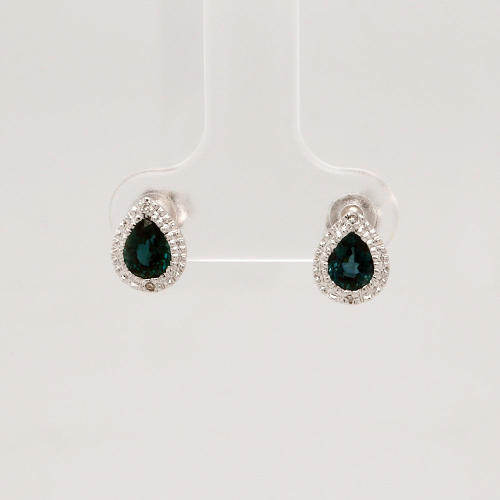 Sterling Silver Pear Shaped Blue Sapphire Stud Earrings