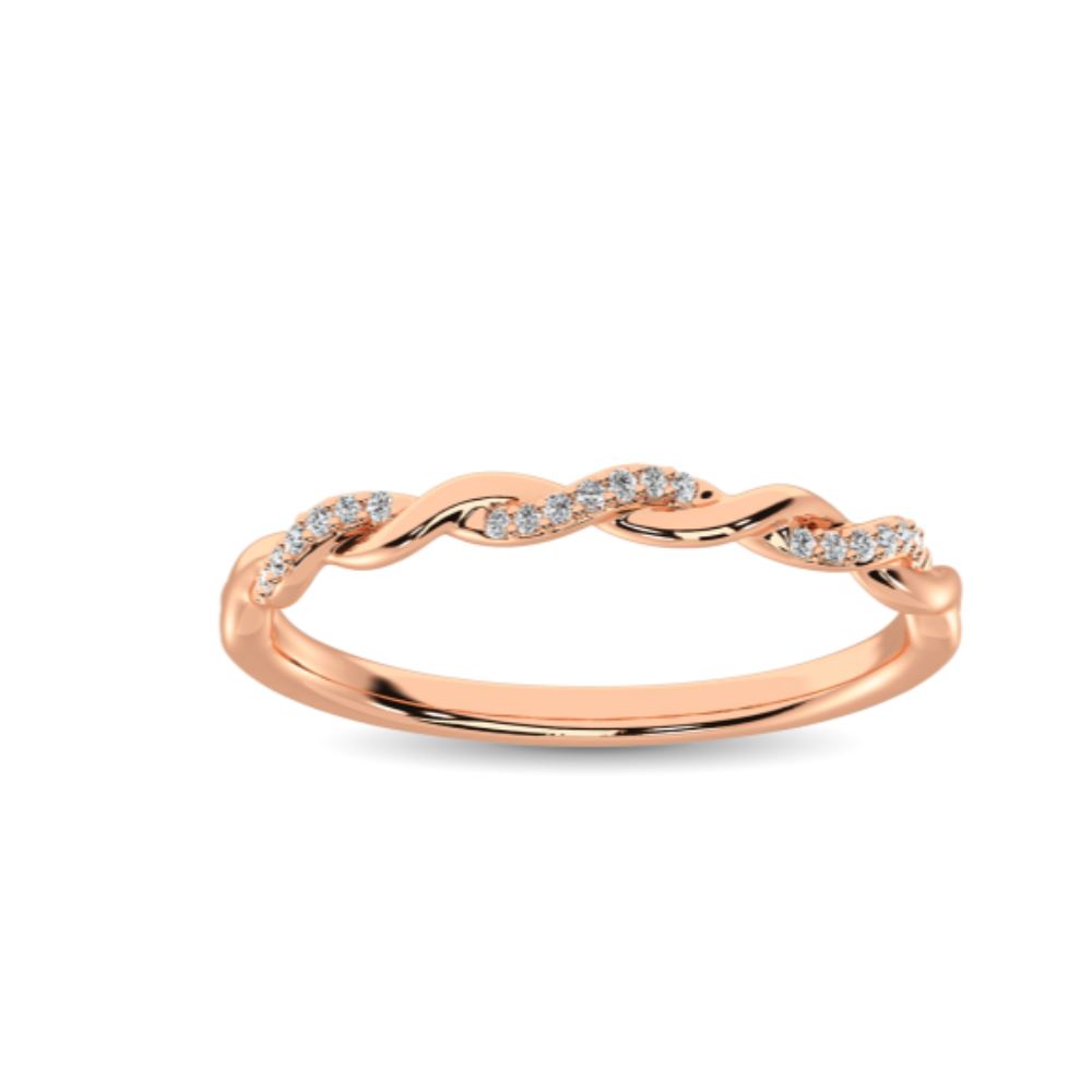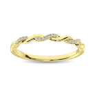 A super cute ring with a twist, literally! This 10 karat gold stackable band features .06 carat total weight of round diamonds on one side of the twist. The other side has a high polish finish. Available in white, yellow and rose gold.