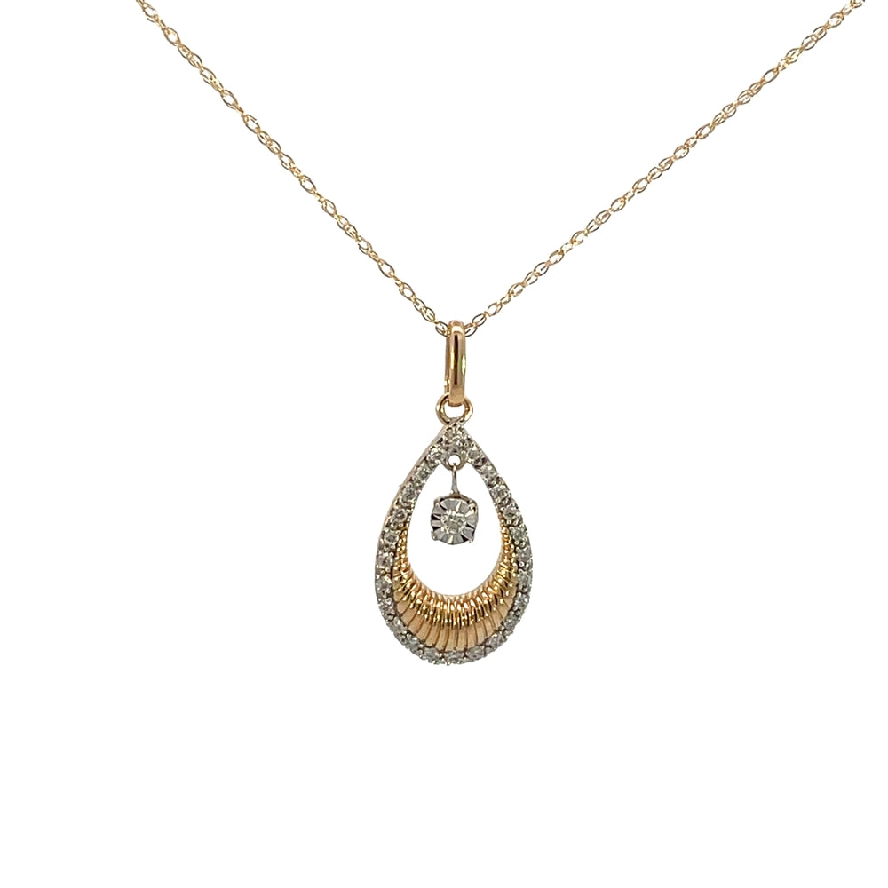 14k Gold Tear Drop Shaped Shimmering Diamond Pendant