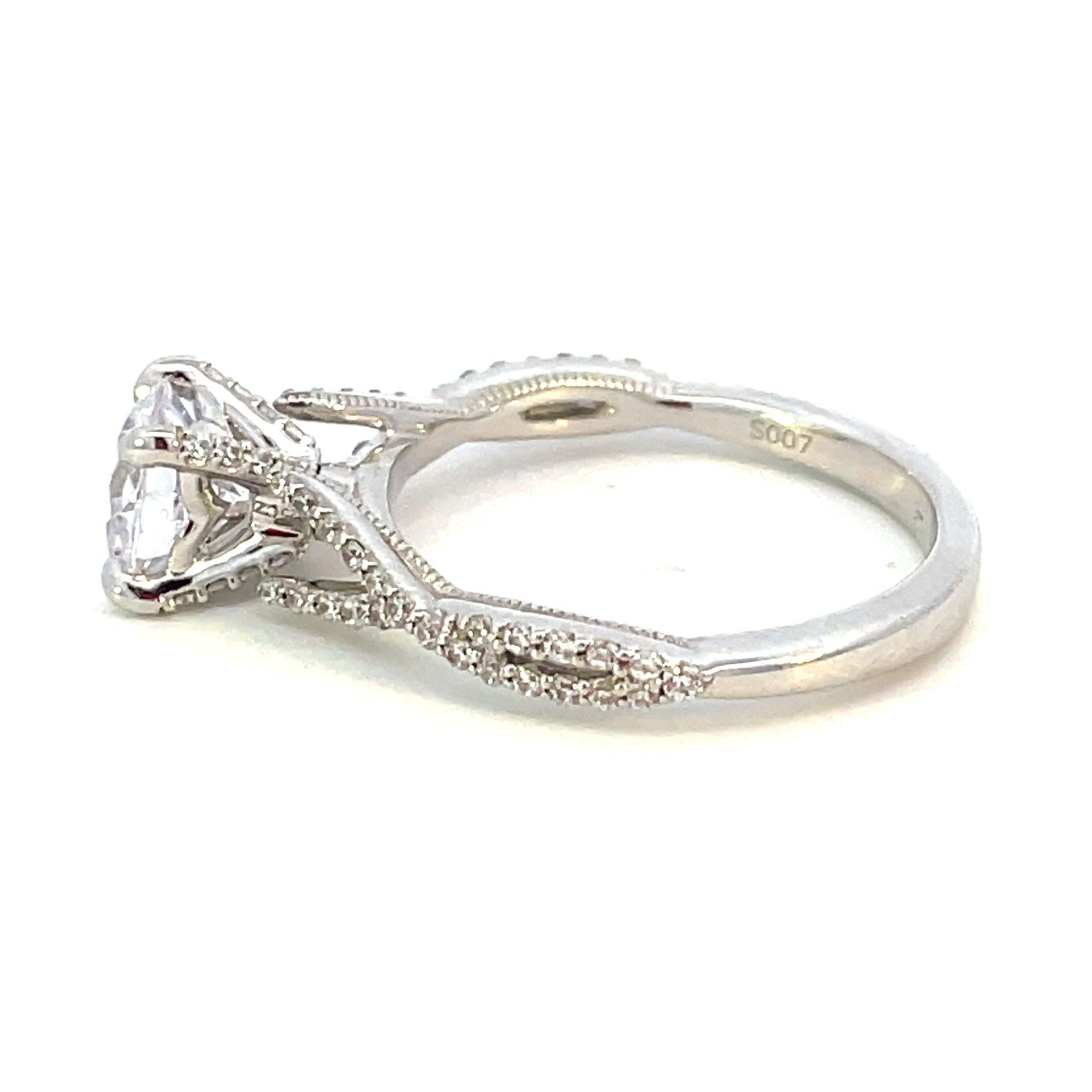A beautifully designed 14K White Gold Cushion Diamond Head with Split Shank Cathedral Engagement Ring (Semi-Mount).