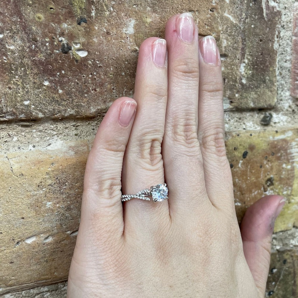 14K White Gold Cushion Diamond Head with Split Shank Cathedral Engagement Ring