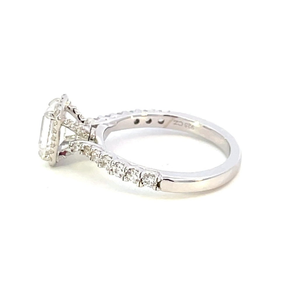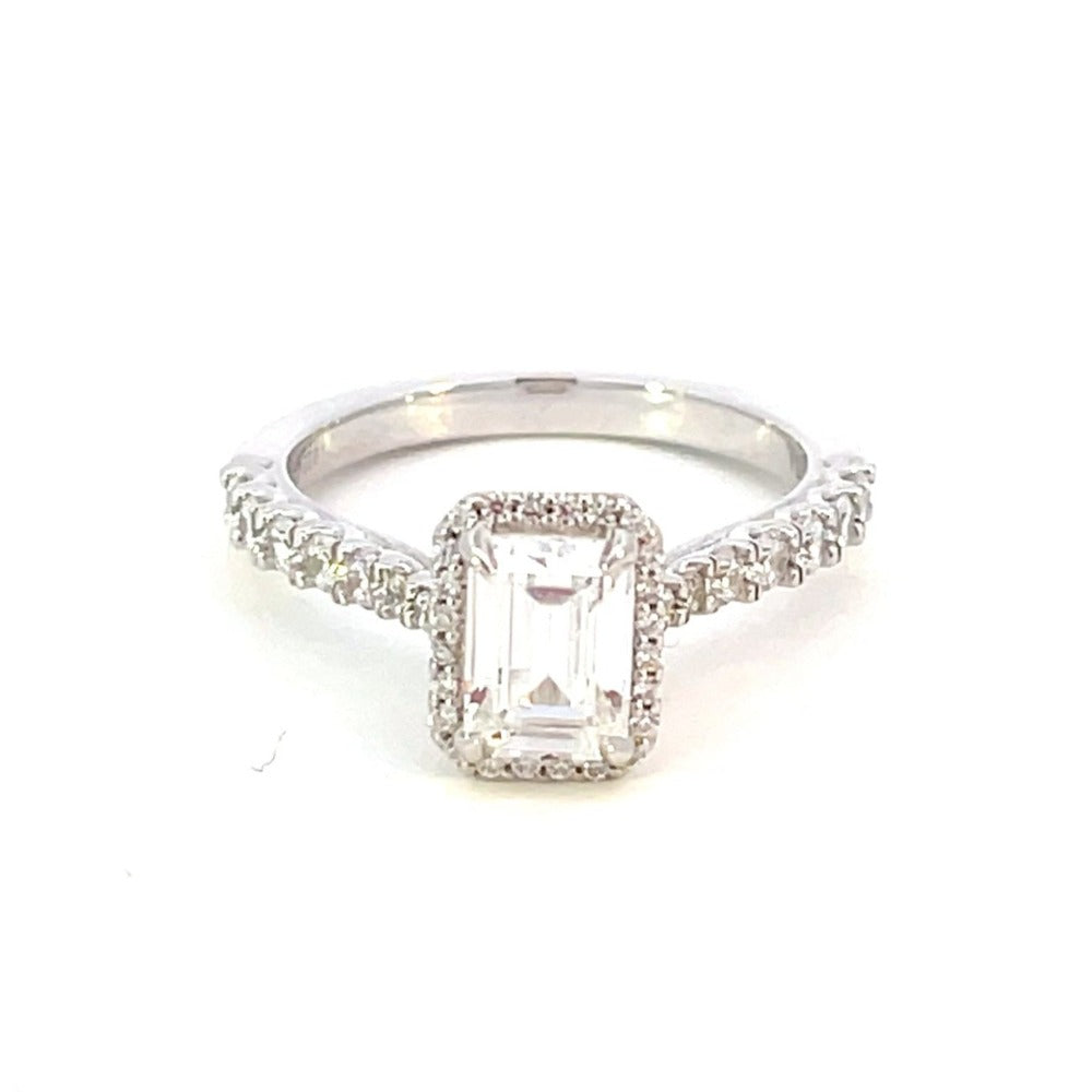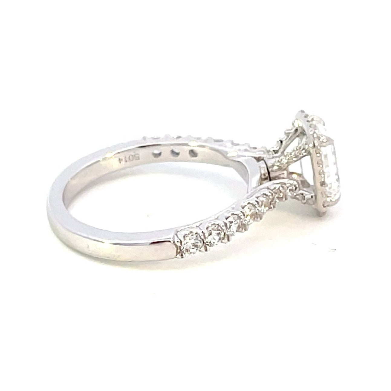 A beautiful 14K White Gold Emerald Halo Head with Scallop Shank Cathedral Engagement Ring (Semi-Mount). This made to order semi-mount ring allows you to choose whichever center stone you desire.