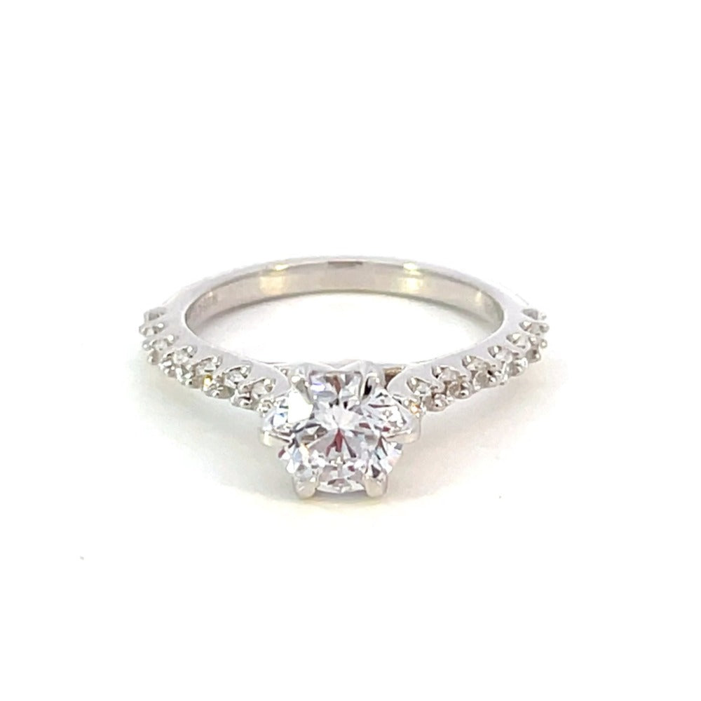 A beautifully designed 14K White Gold Round Solitaire Diamond Head with Classic Shank Cathedral Engagement Ring (Semi-Mount).