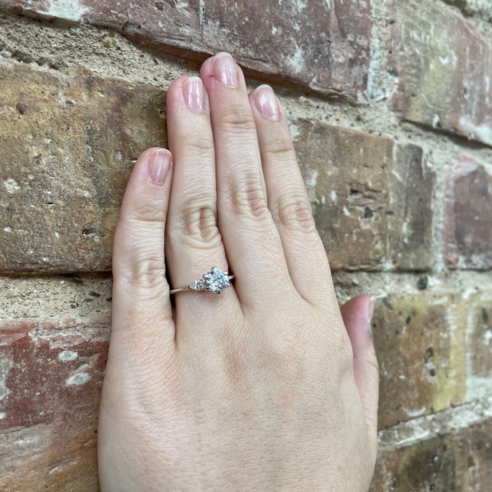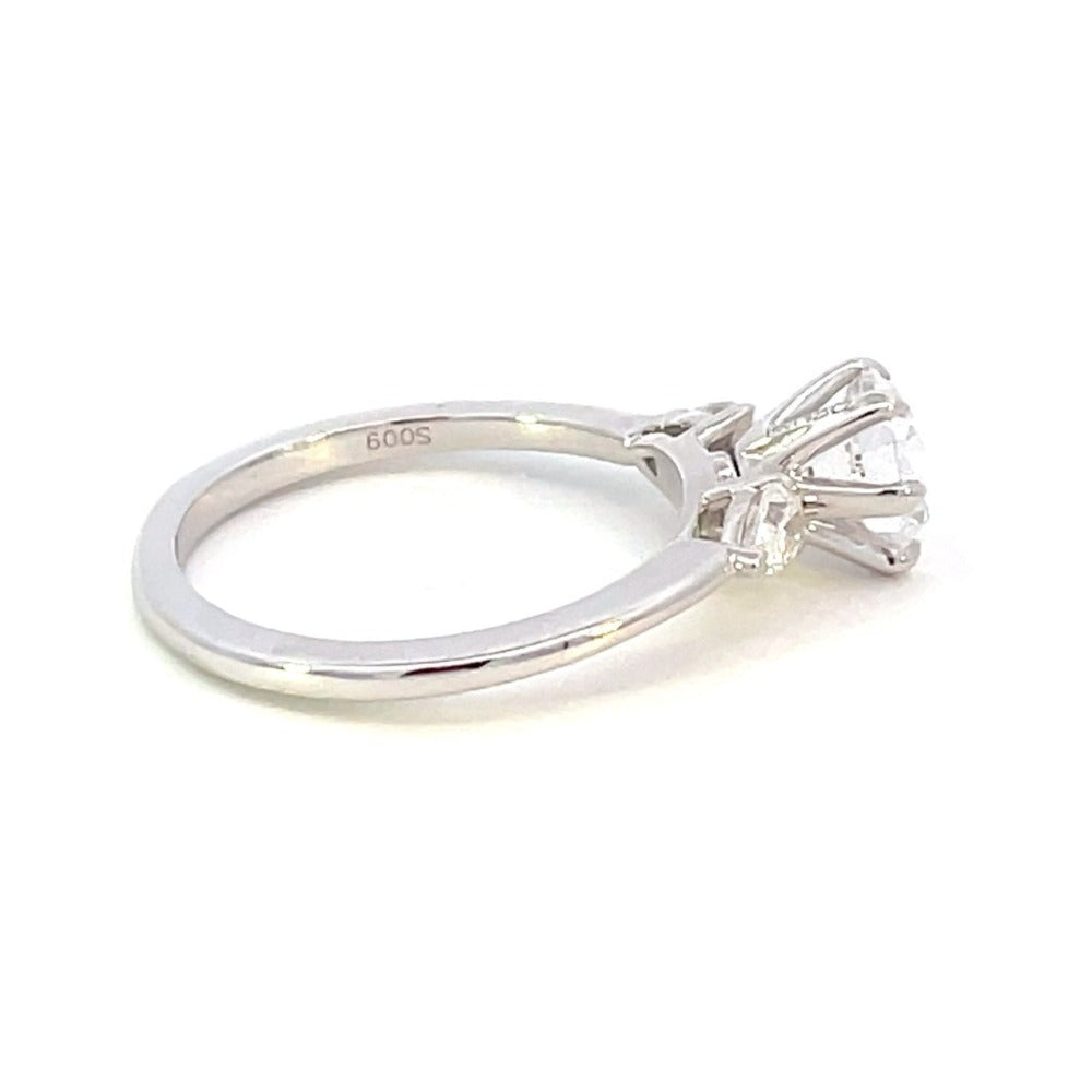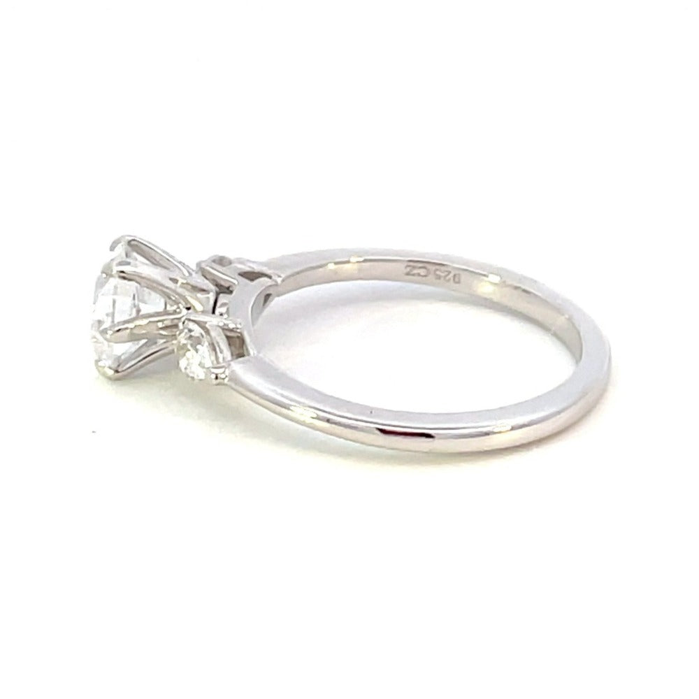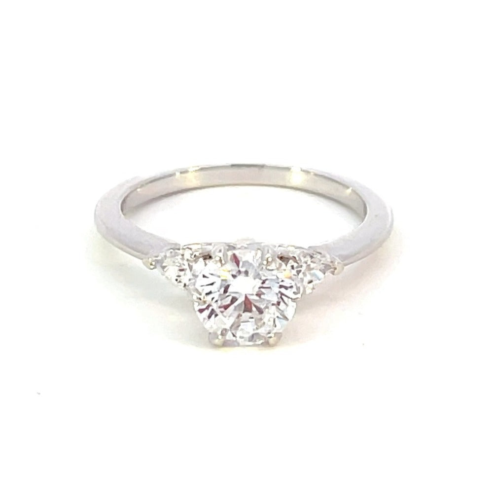 14K White Gold Round Solitaire Head Three Stone Cathedral Engagement Ring