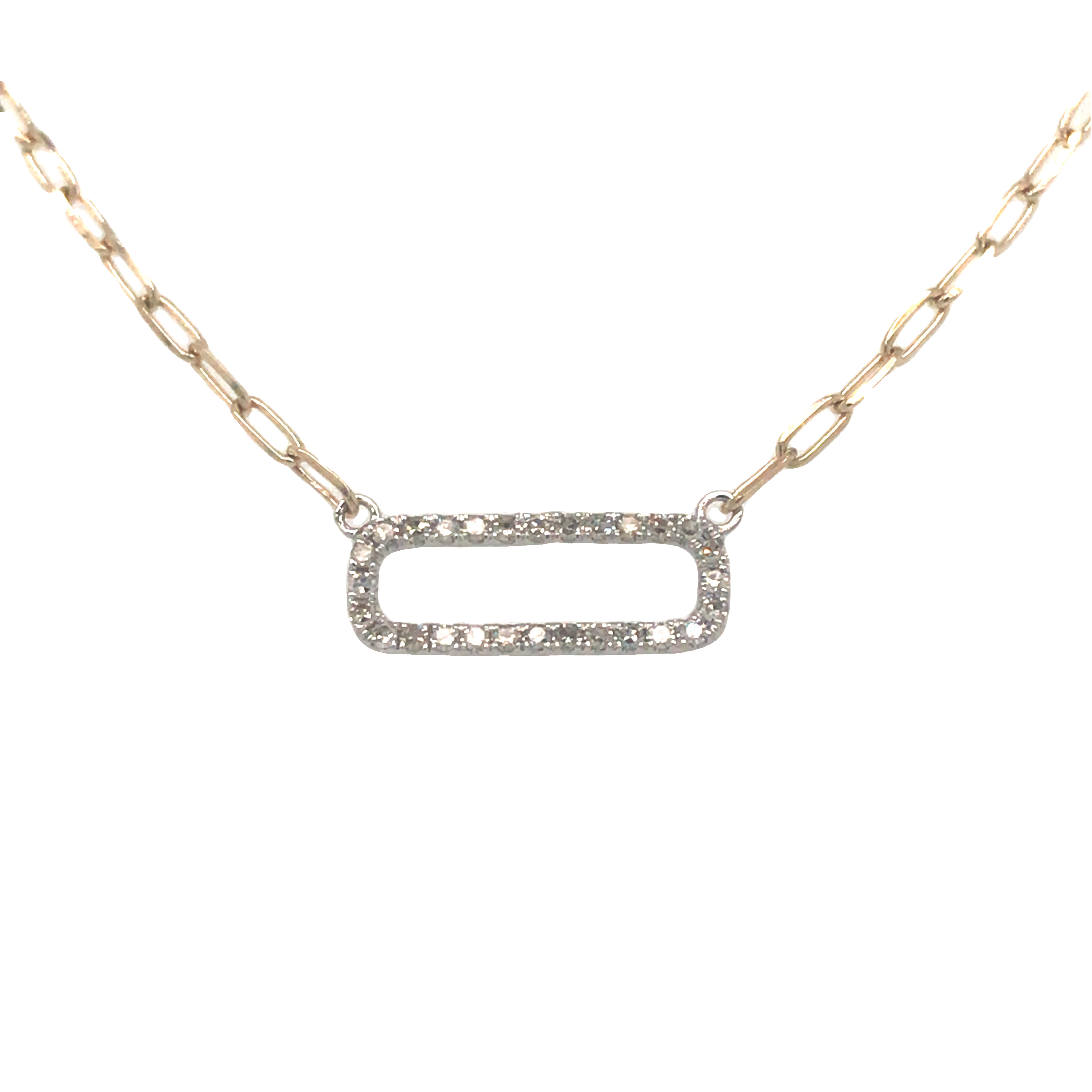 This stunning necklace will have you right on trend! Crafted of 14 karat yellow gold, this necklace features petite paperclip links attached to one larger, diamond studded link. The diamond link is set with .21 carat total weight of sparkling diamonds. 18 inch chain.
