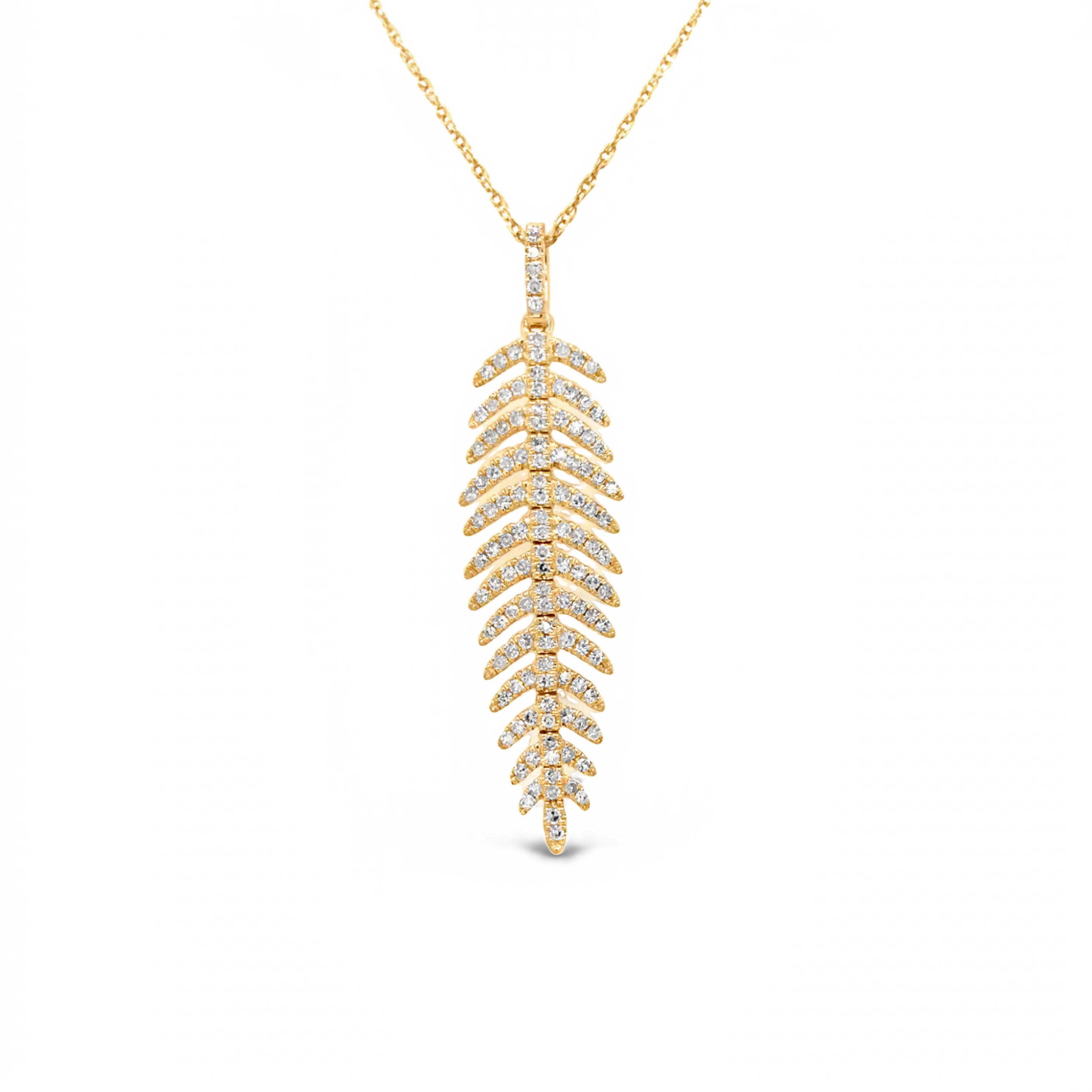 This stunning necklace is like nothing you've ever seen before. Each layer is fastened to the next by individual, hand-assembled, joints giving the pendant incredible movement. The 14 karat gold pendant is studded with just over 1/3 carat total weight of glittering diamonds. 18 inch chain.